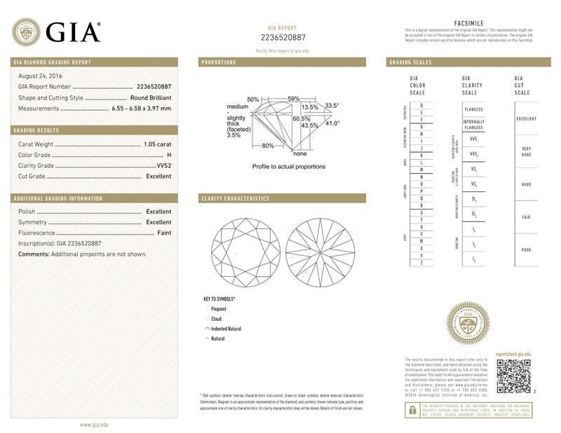 GIA/Round/H/VVS2/1.05Ct/EX/EX/#2236520887/#R55516