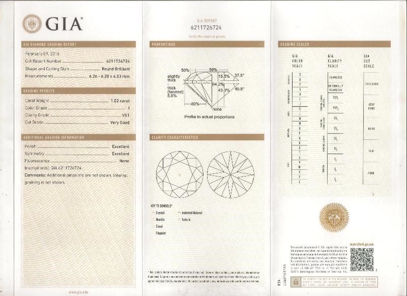 GIA/Round/I/VS1/1.02Ct/EX/EX/#6211726724/#R49991