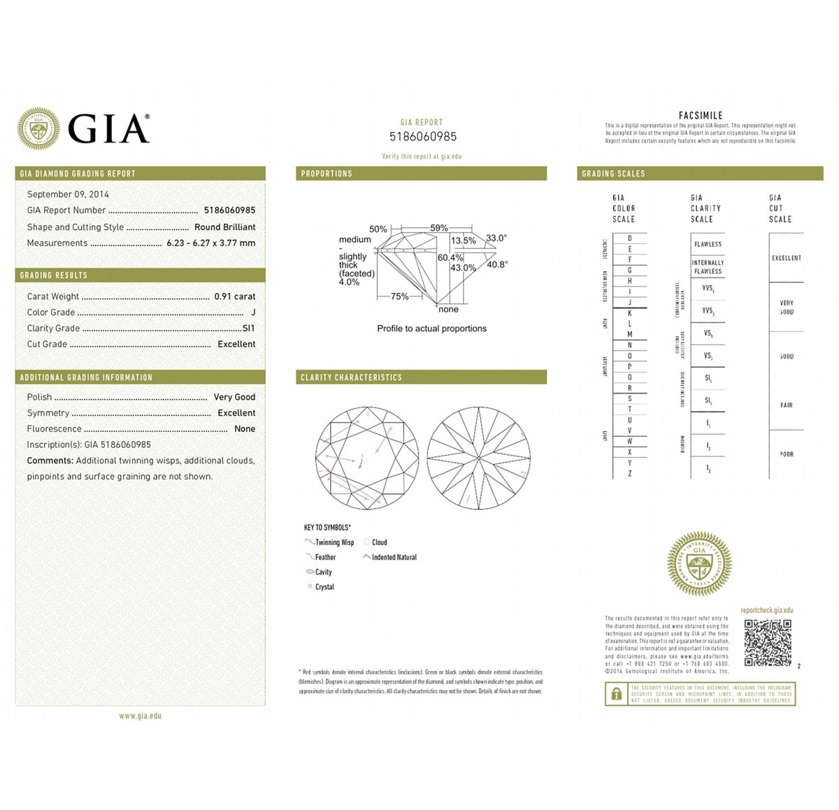 GIA/Round/J/SI1/0.91/EX/VG/EX/5186060985