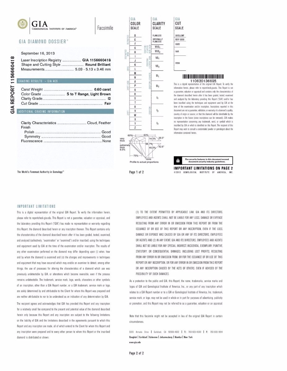 GIA/Round/S/I2/0.6ct/FR/GD/1156660418/#SS-4083