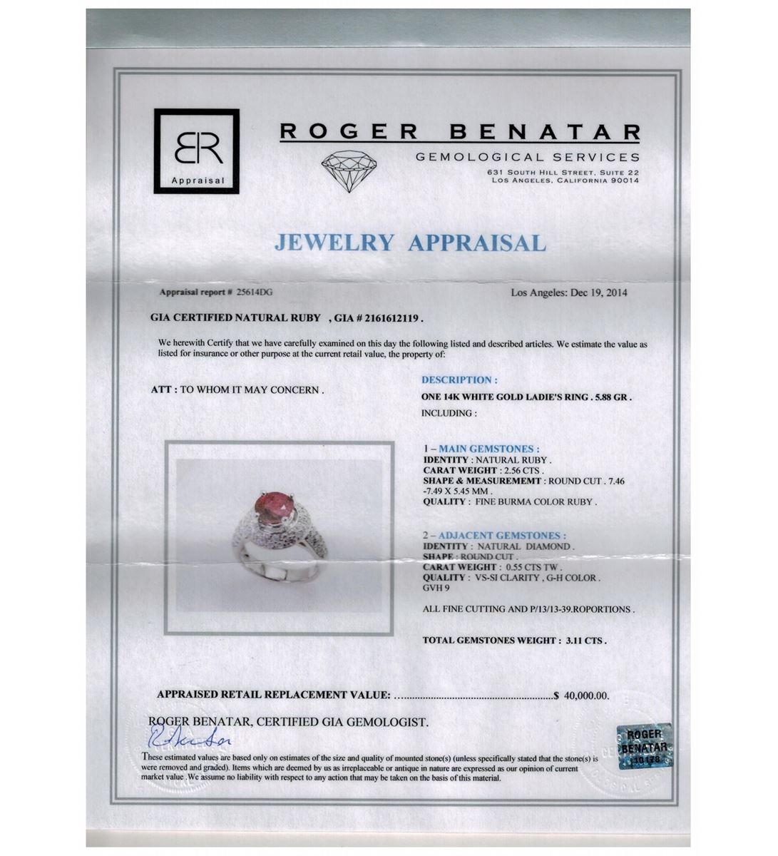 GIA Ruby Round 2.56ct Diamond 0.55ct