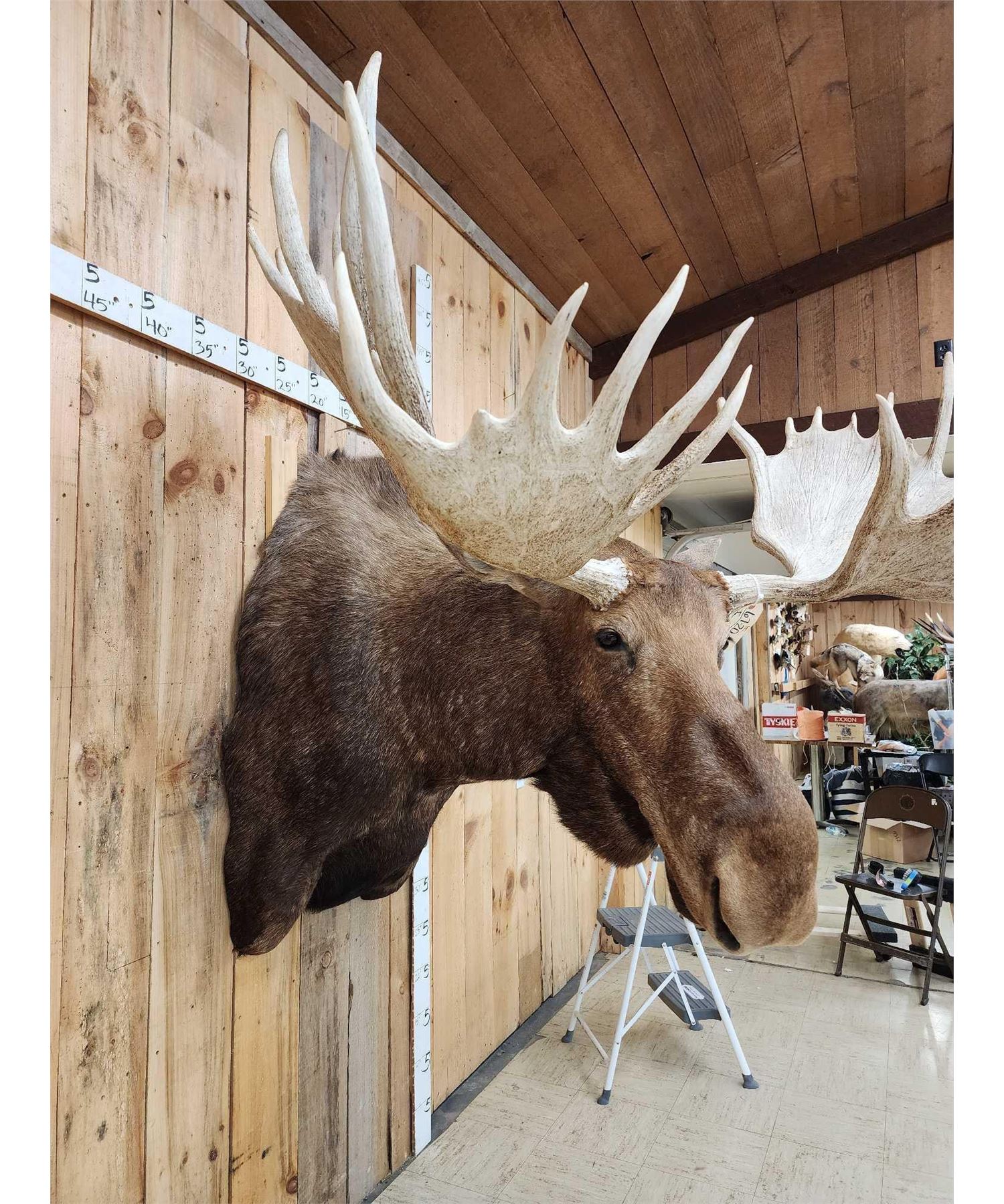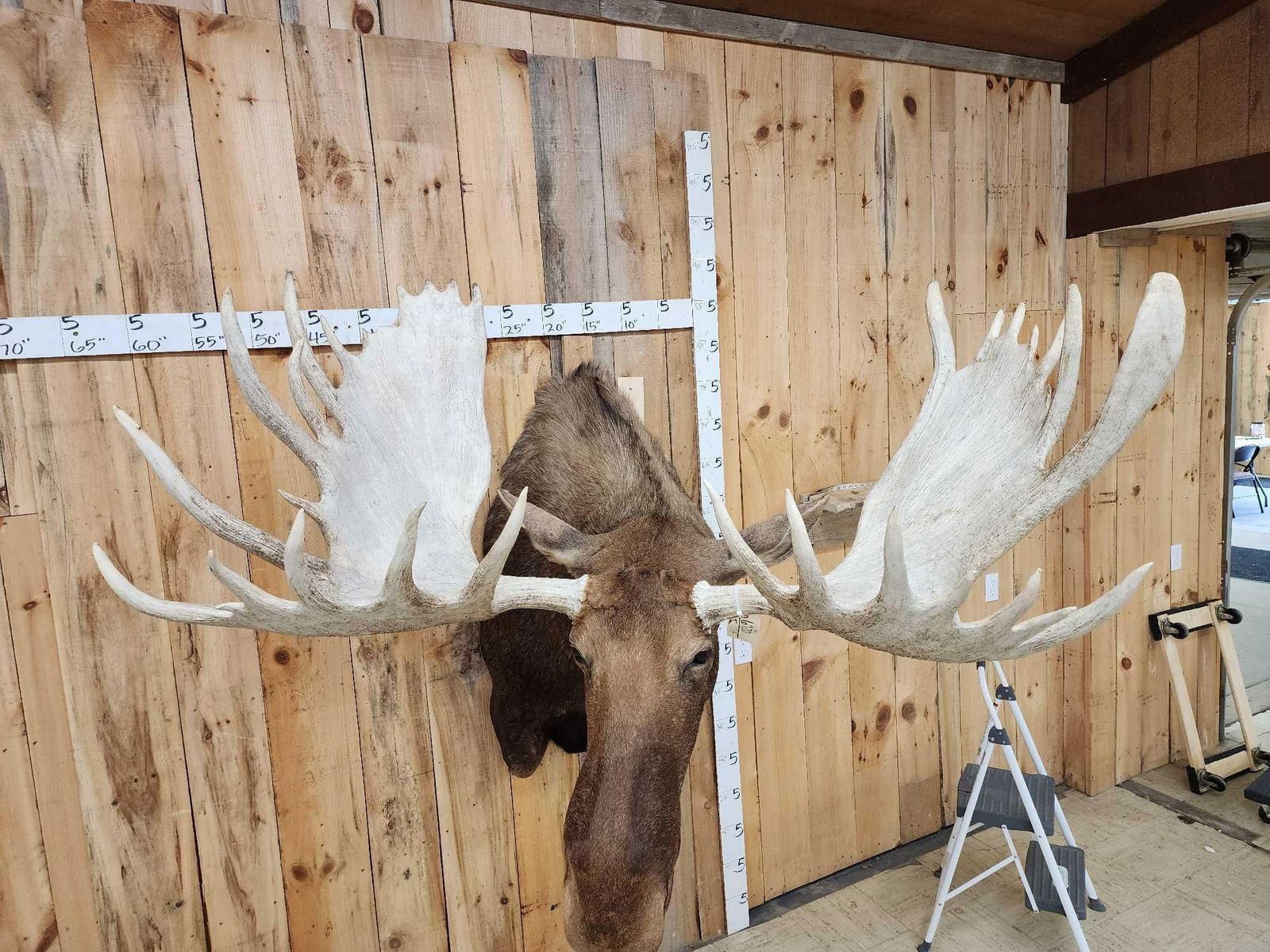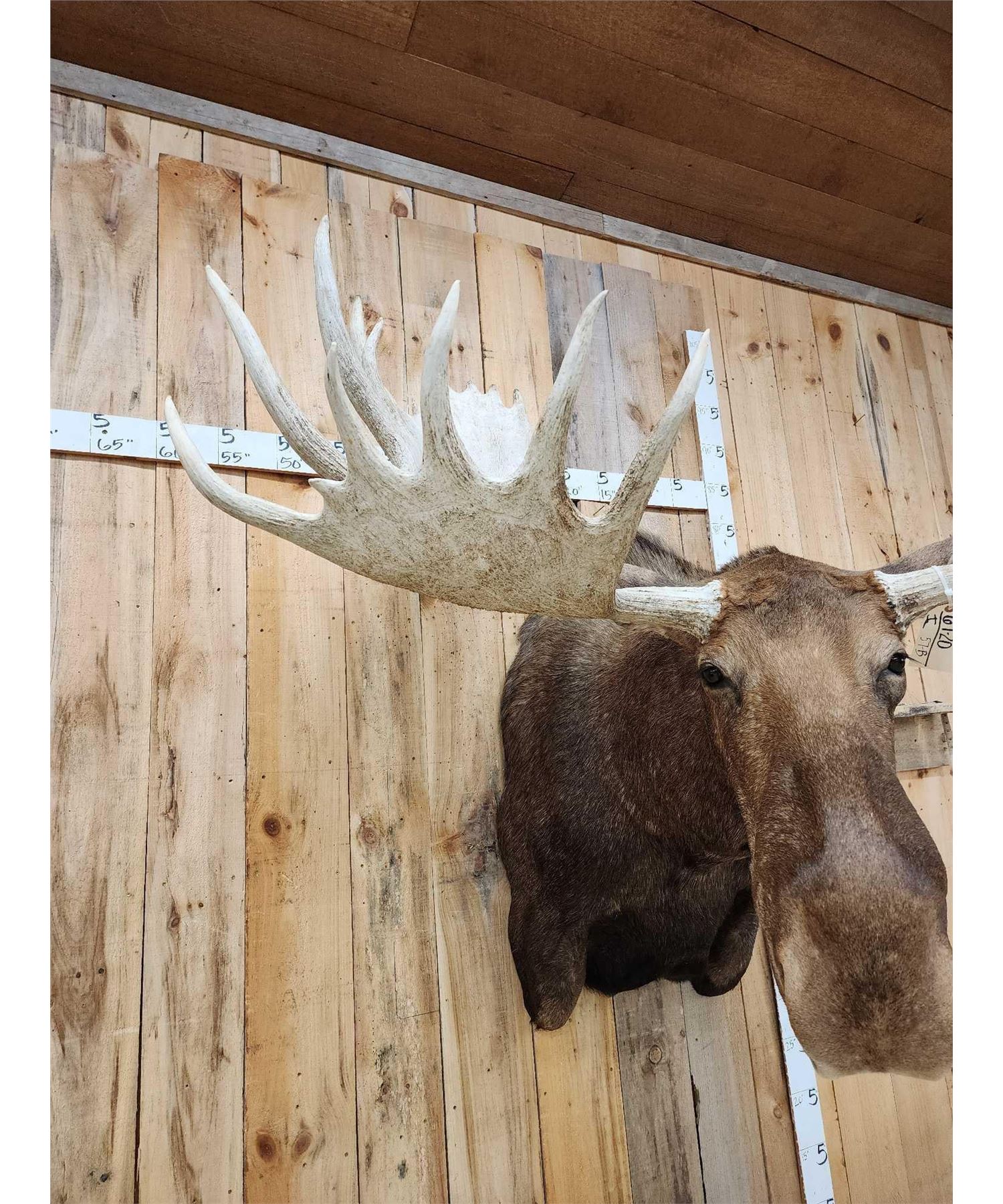 67.20 Extra nice mount great Taxidermy work huge 32 point Antlers giant paddles giant fronts 58" outside spread big body great focal point for any room ! Overall dimensions about 58" wide x 58" tall x 69" out from the wall
