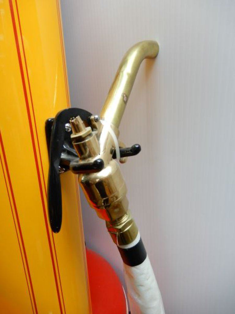 GILBERT & BARKER MODEL NO. GB65 5 GAL GAS PUMP PROFESSIONALLY RESTORE TO SHELL - SIGHT GLASS - ADJUSTABLE MEASURE - BRASS NOZZLE - CLAMSHELL MILK GLASS GLOBE - PAT 4/29/1919 - LIGHTS UP LOCATION: LOWER LEFT