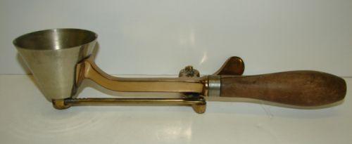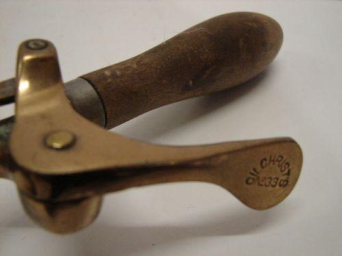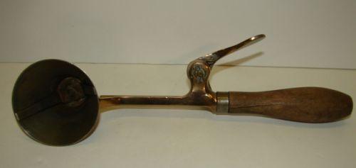 GILCHRIST ICE CREAM SCOOP. Wooden handle shows a small split.. Marked on separator "12". Marked on thumb mechanism "Gilchrist's No. 33". 10" L