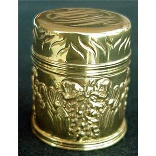 Small box made by Tiffany. Measures 1 3/8inches high. Diam is 1 1/4inches. Cylindrical shape. The sides are beautifully chased with ribbons and swags. Top is monogrammed MT? Rich gilding. Great quality. Top is closed very tight and I don't want to spoil the great condition by forcing it open. Marked TIFFANY & CO STERLING UNDERNEATH. No dings / dents / damage of any sort.