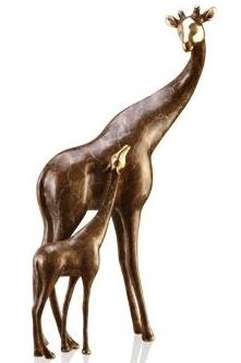 GIRAFFE MOTHER & BABY BRONZE SCULPTURE - 11"H 6.5"W 4 "D - GREAT ATTENTION TO DETAIL - BEAUTIFUL FINISH - LOST WAX CAST