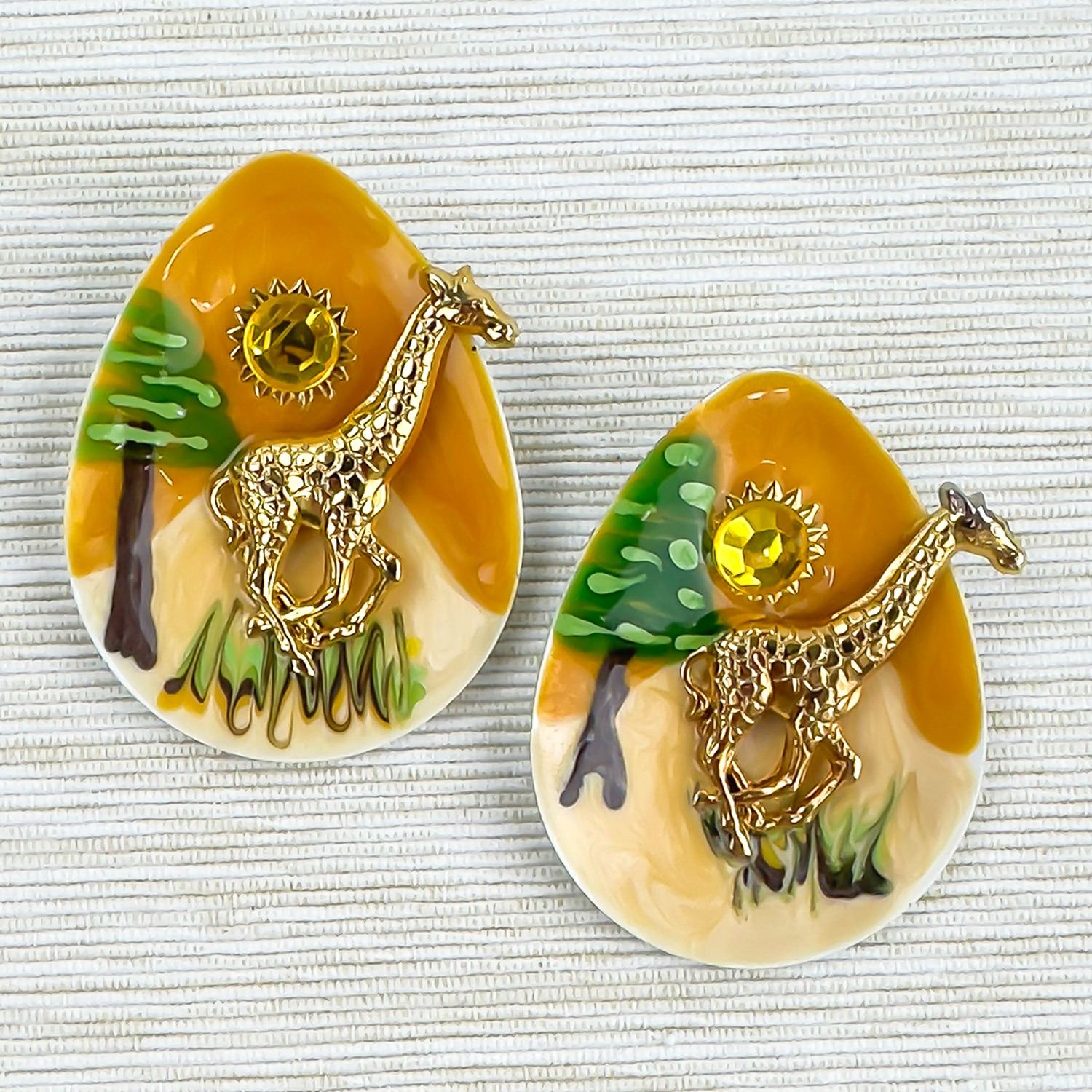 #8238 - UNMARKED - HAND CRAFTED AND PAINTED COSTUME JEWELRY EARRINGS - GIRAFFE THEME. MEASURES: 2.25” (5.75 CM) LONG