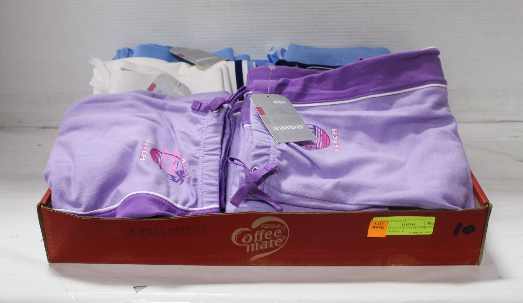 3PCS, KNIT STRETCH PANTS XL BLUE 2PCS, BLUE/WHITE STRETCH PANTS XL 3PCS, CAPRI STRECH PANTS PURPLE 3PCS. 11 PIECES **ALL ITEMS MUST BE REMOVED BY 5PM SATURDAY, FEBRUARY 8TH 2025. ALL REMAINING ITEMS WILL BE SUBJECT TO A $6.00 PER DAY STORAGE CHARGE. ANY ITEMS REMAINING AFTER MONDAY, MARCH 3RD 2025 WILL BE CONSIDERED FORFEITED. NO REFUNDS WILL BE ISSUED FOR FORFEITED ITEMS. TO SCHEDULE A PICK UP APPOINTMENT CLICK HERE