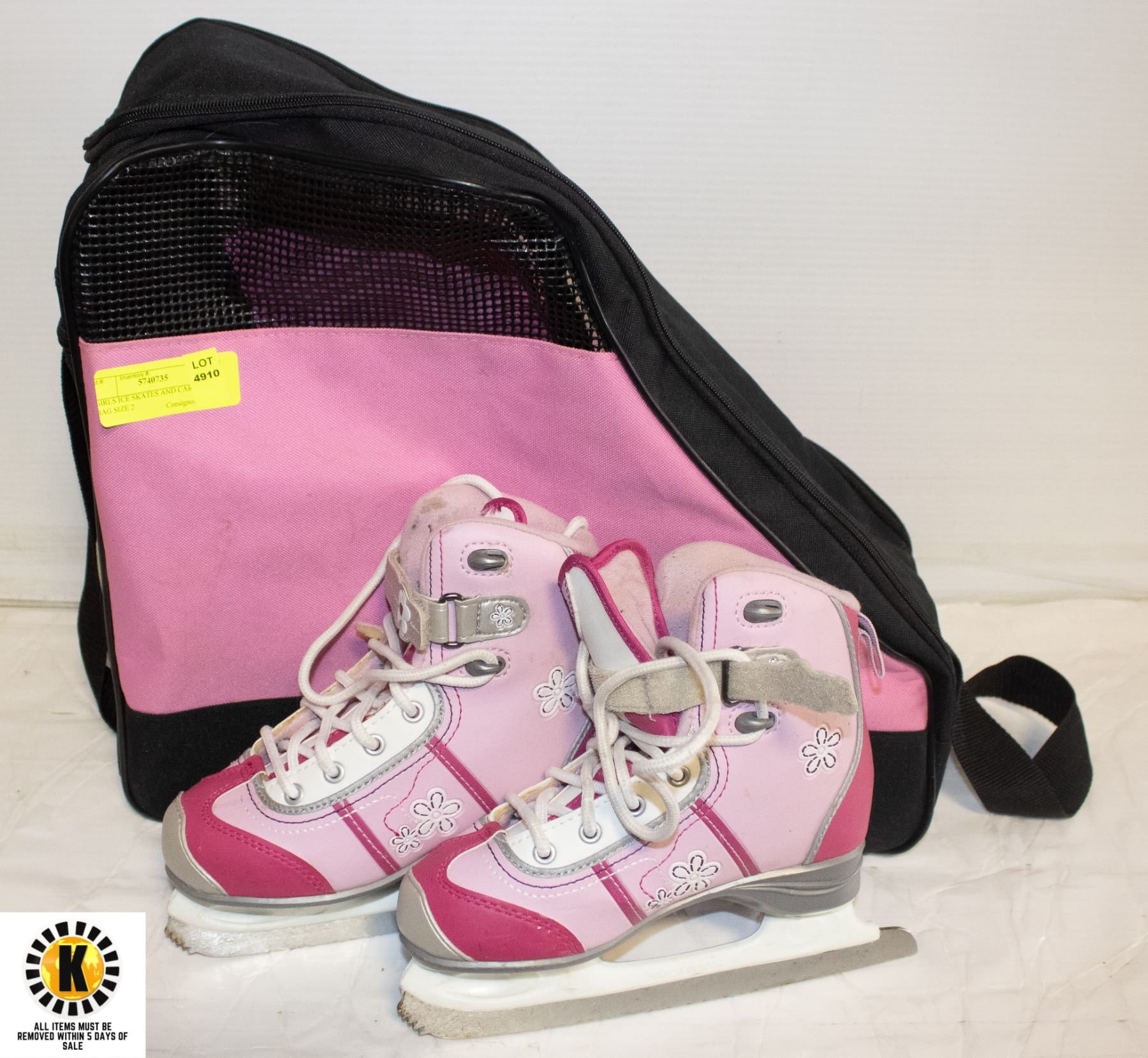 GIRLS ICE SKATES AND CARRYING BAG SIZE 2