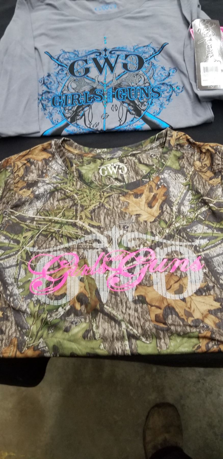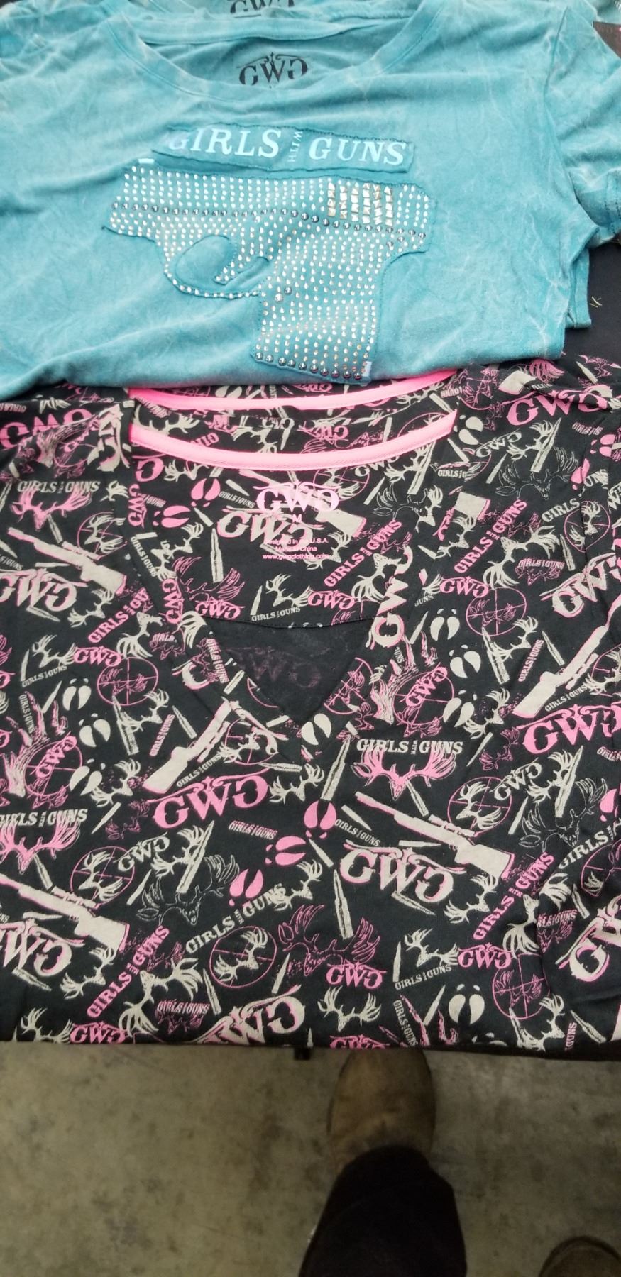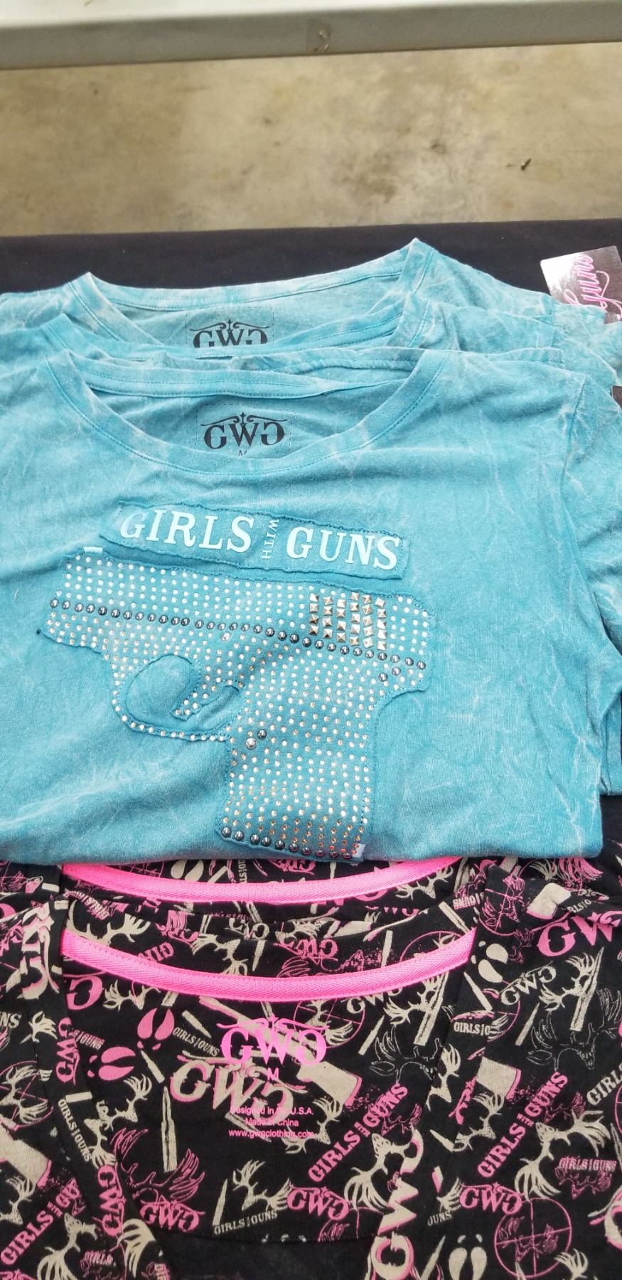 GIRLS WITH GUNS ASSORTED SM X 2, MED X 8, L X 2. RETAIL VALUE $470