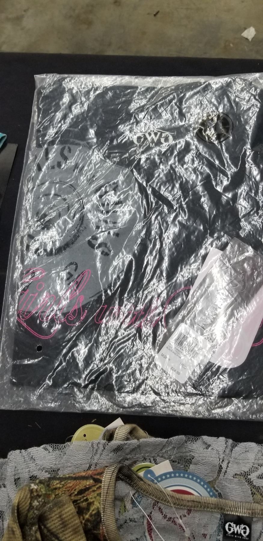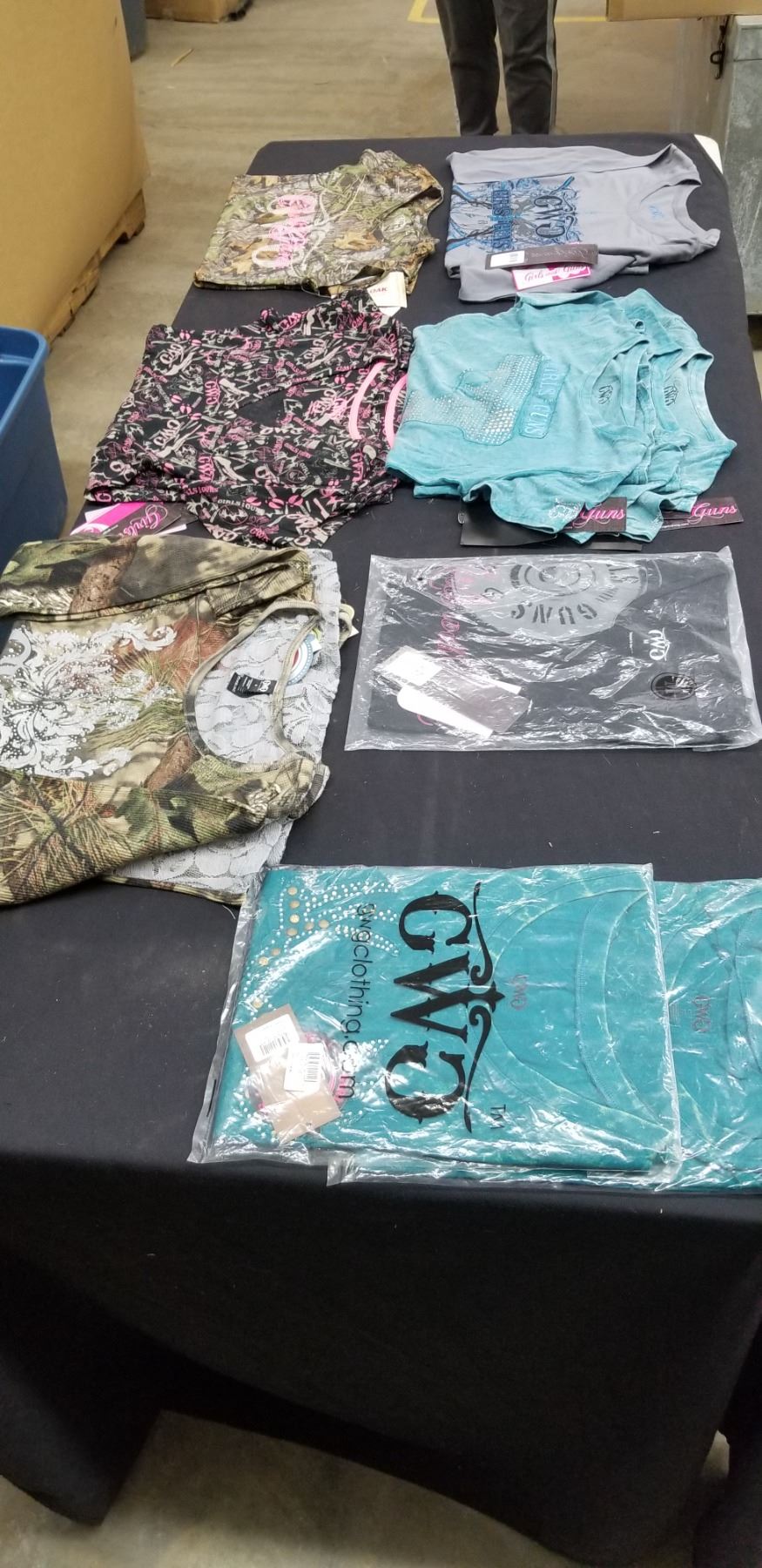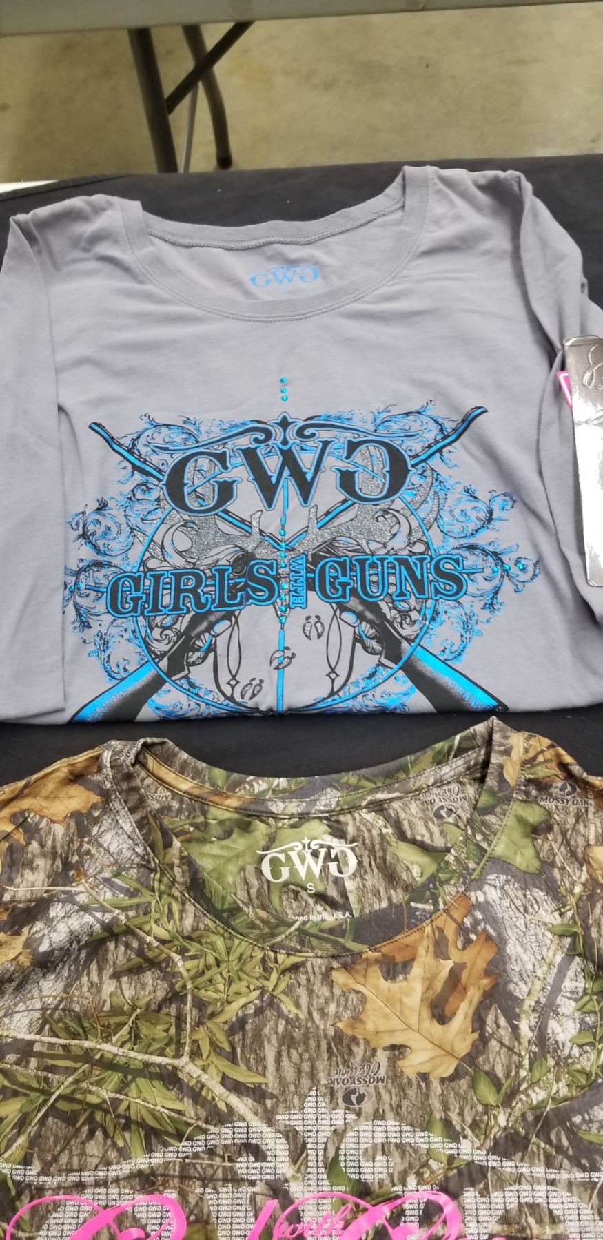 GIRLS WITH GUNS ASSORTED SM X 2, MED X 8, L X 2. RETAIL VALUE $470
