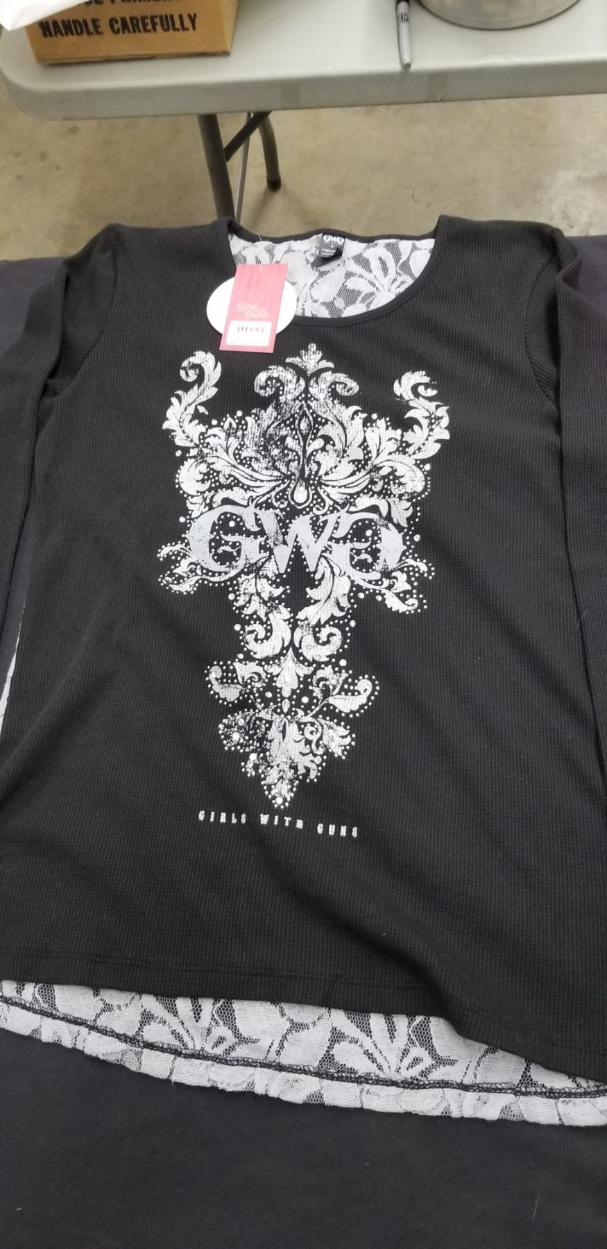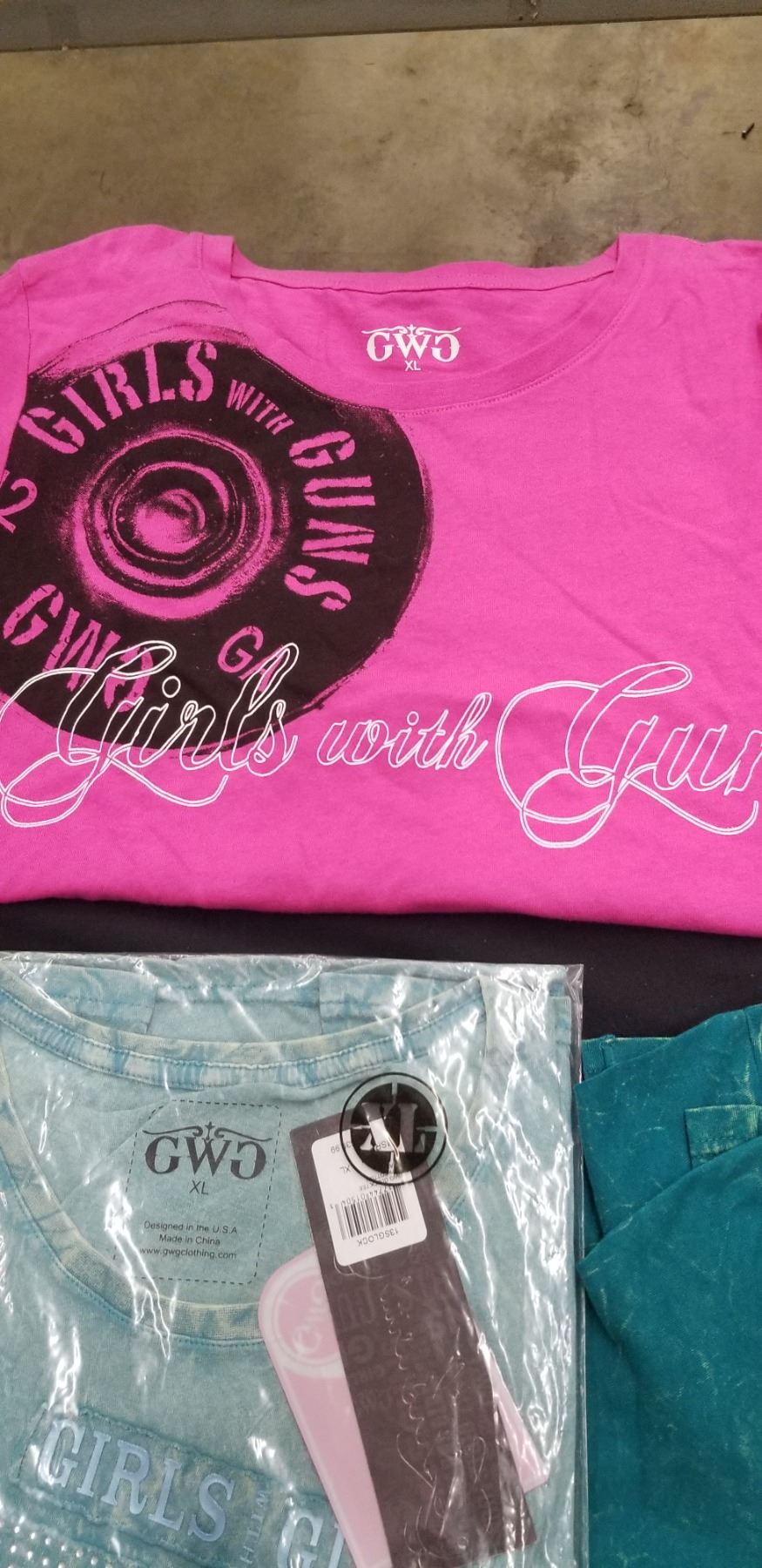 GIRLS WITH GUNS EXTRA LARGE T-SHIRTS AND LONG SLEEVE SHIRTS $39.99 PER SHIRT - TOTAL RETAIL $480