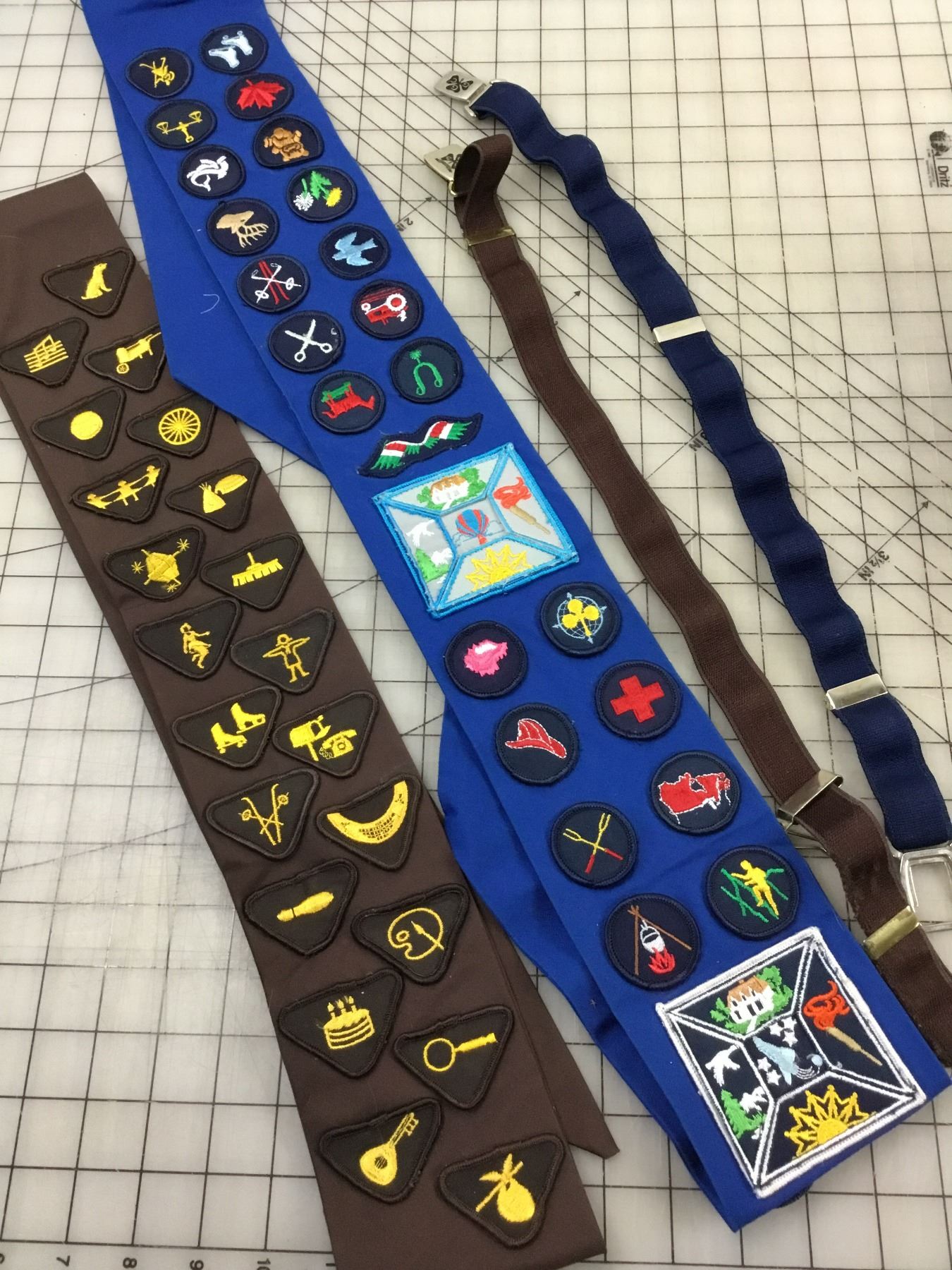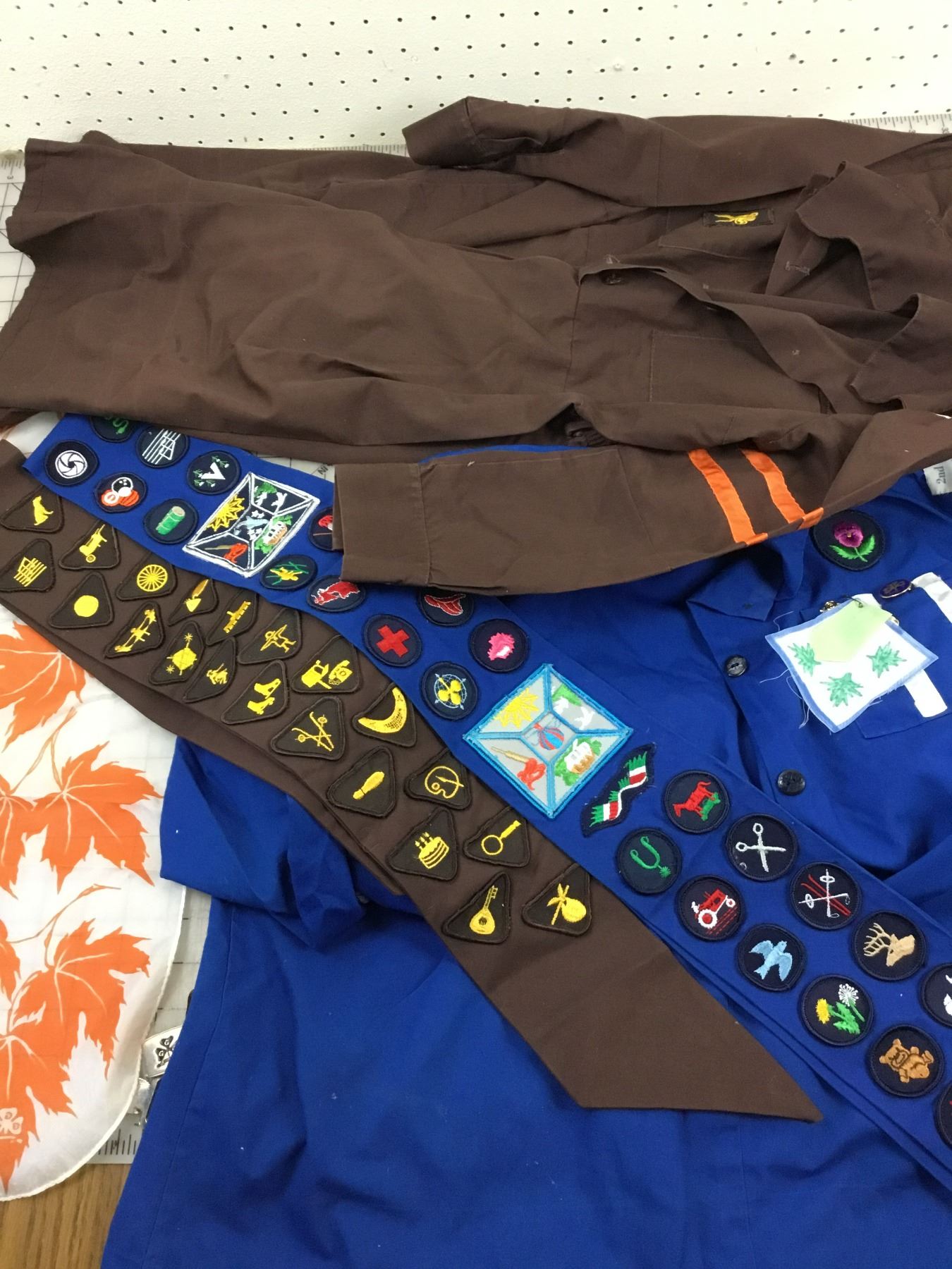 GIRLSCOUT AND BROWNIE LOT UNIFORMS PATCHES ETC