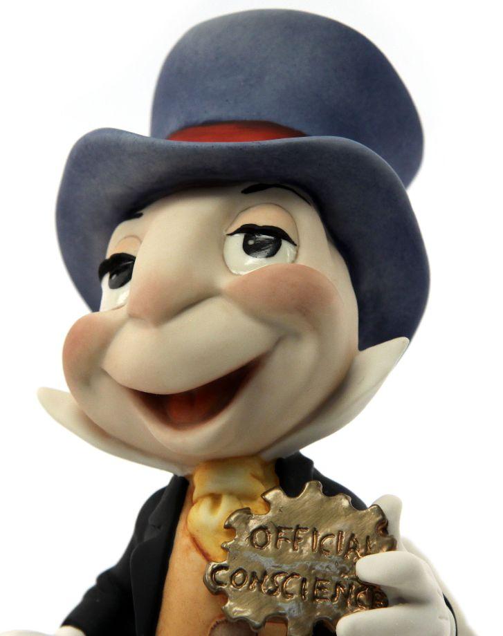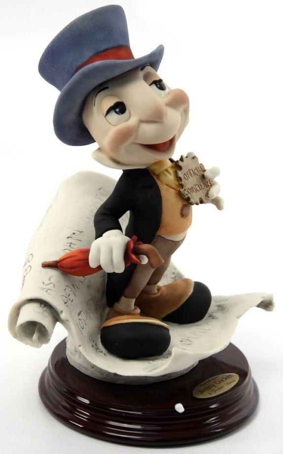 8.5 inch porcelain Jiminy Cricket figurine from Walt Disney's Pinnochio crafted by Giuseeppe Armani. Very good condition with original box.