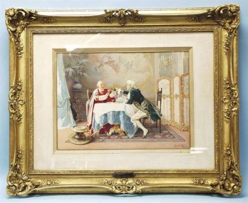 GIUSEPPE GUIDI (1881-1931) Italian school. "Cardinal with a Companion". Watercolour. Signed and marked Roma, lower right. 17" x 24". In gilt frame. 7500-8500