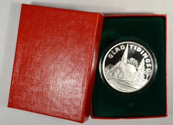 WINTER CHURCH SCENE ON A HIGH QUALITY ART BAR WITH PLASTIC CAPSULE AND RED GIFT BOX MAKES THE PERFECT GIFT, EST. $60.00 TO $65.00