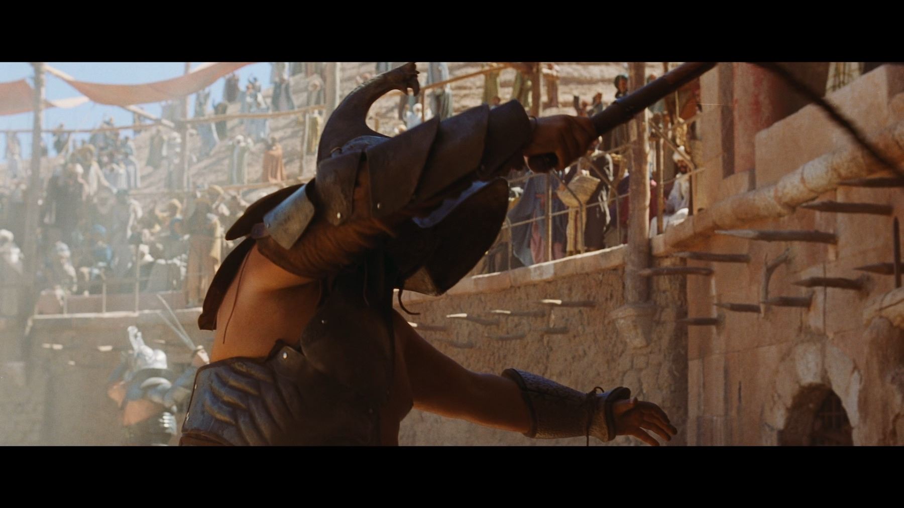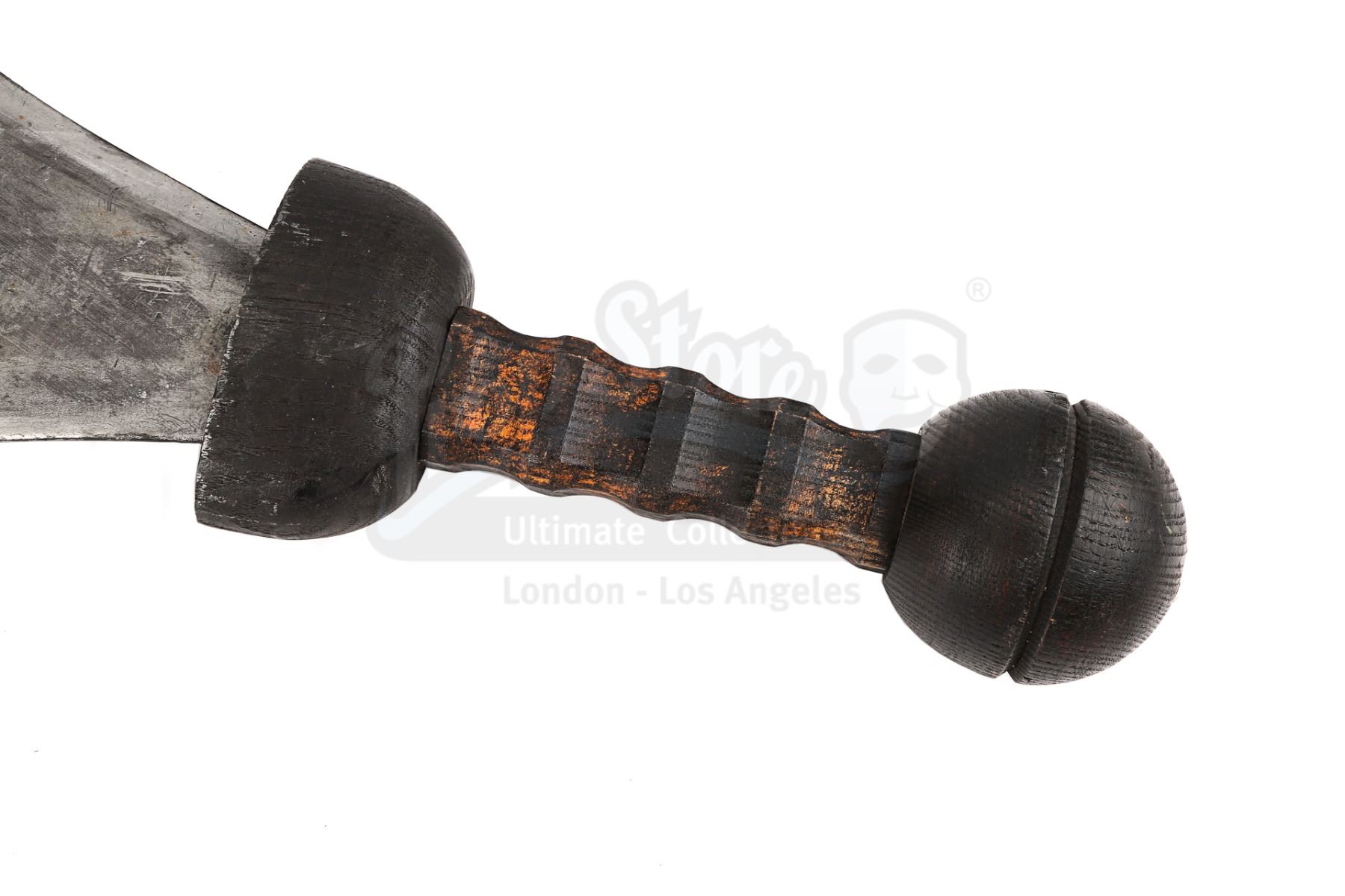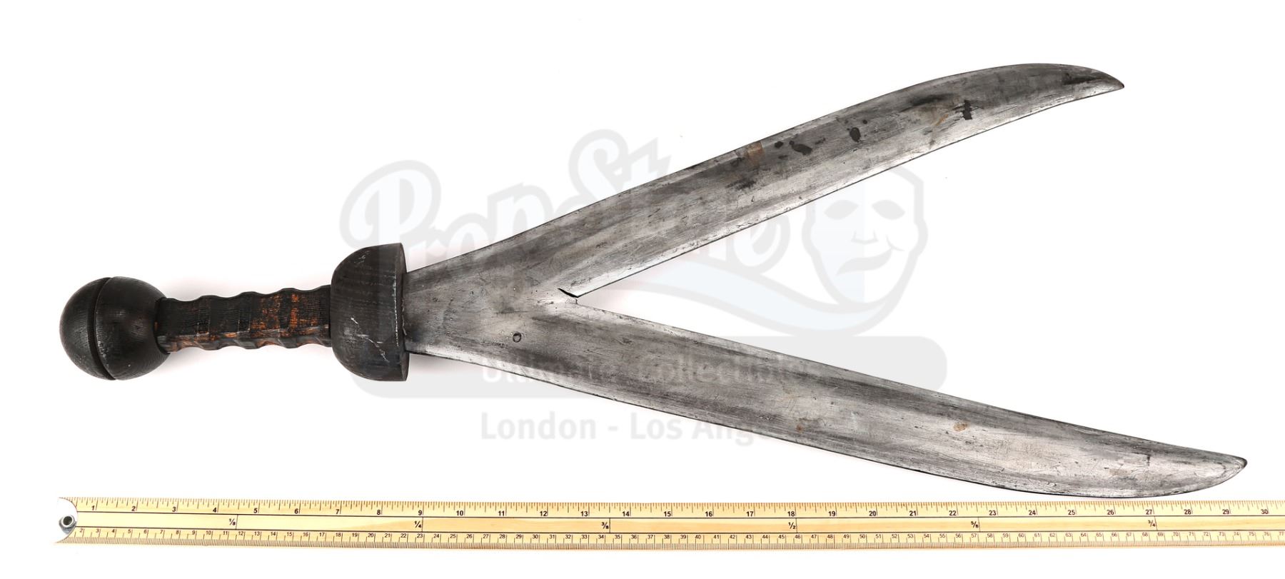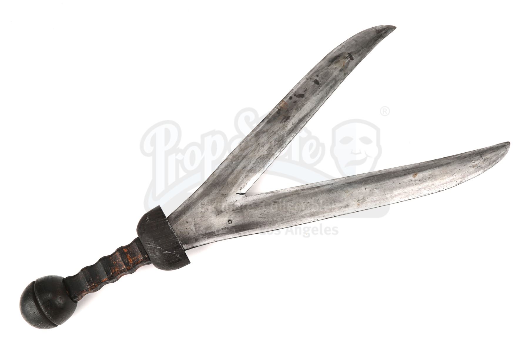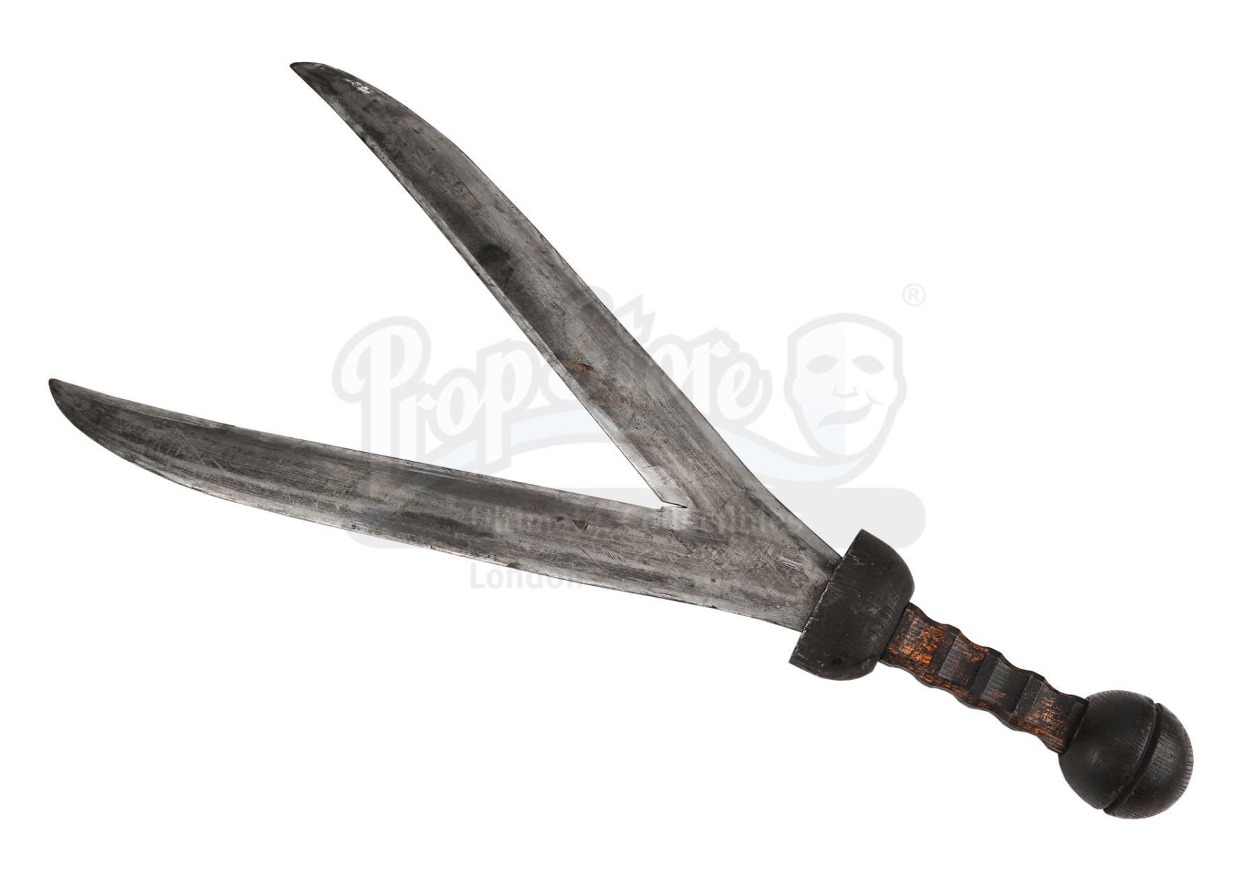 A dual-bladed sword from Ridley Scott's historical epic Gladiator. The sword was wielded by a gladiator in the arena at Zucchabar during Maximus' (Russell Crowe) first fight, in which Maximus and Juba (Djimon Hounsou) were chained together, along with the other slaves, to further entertain the audience.