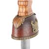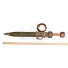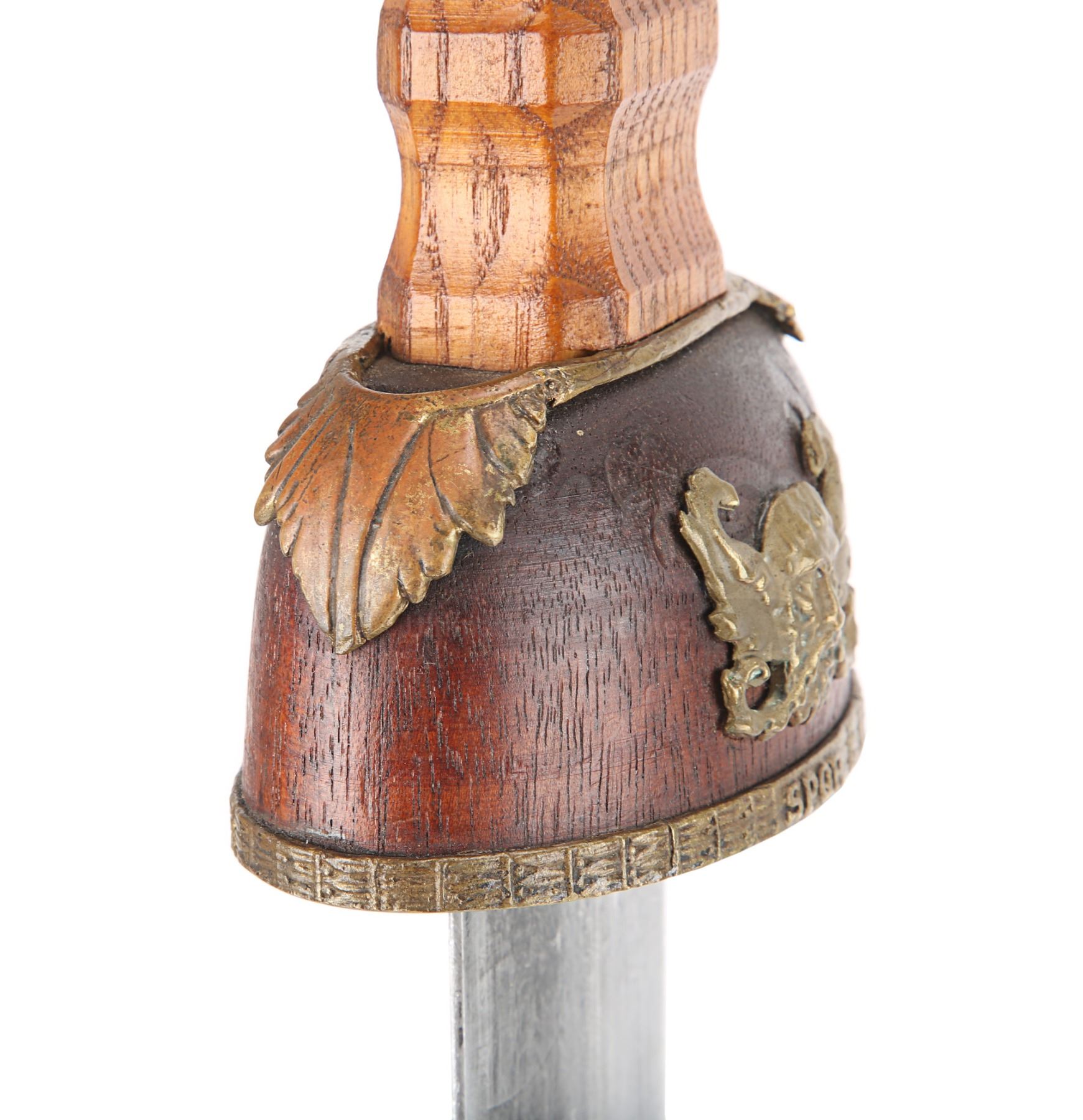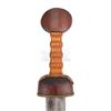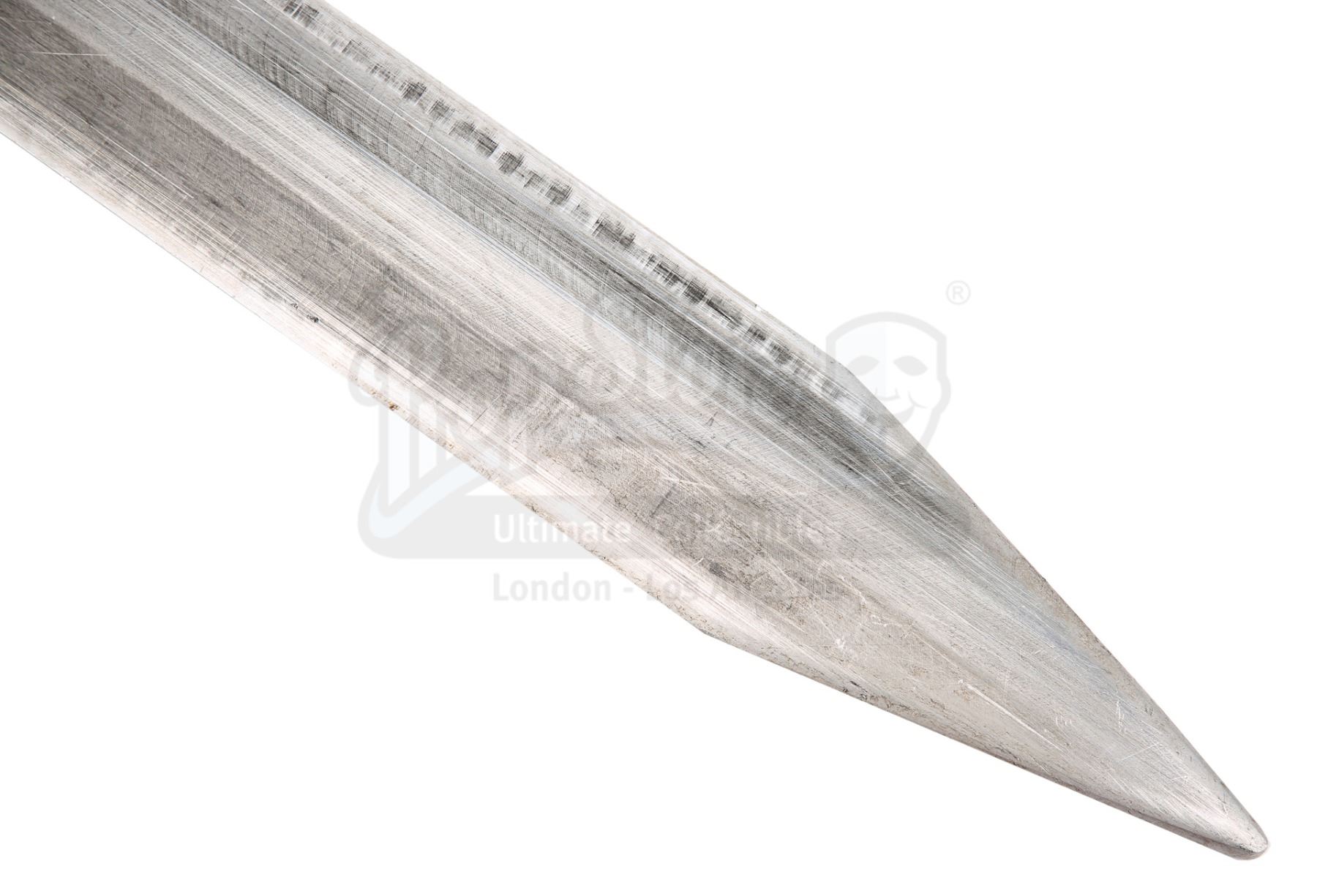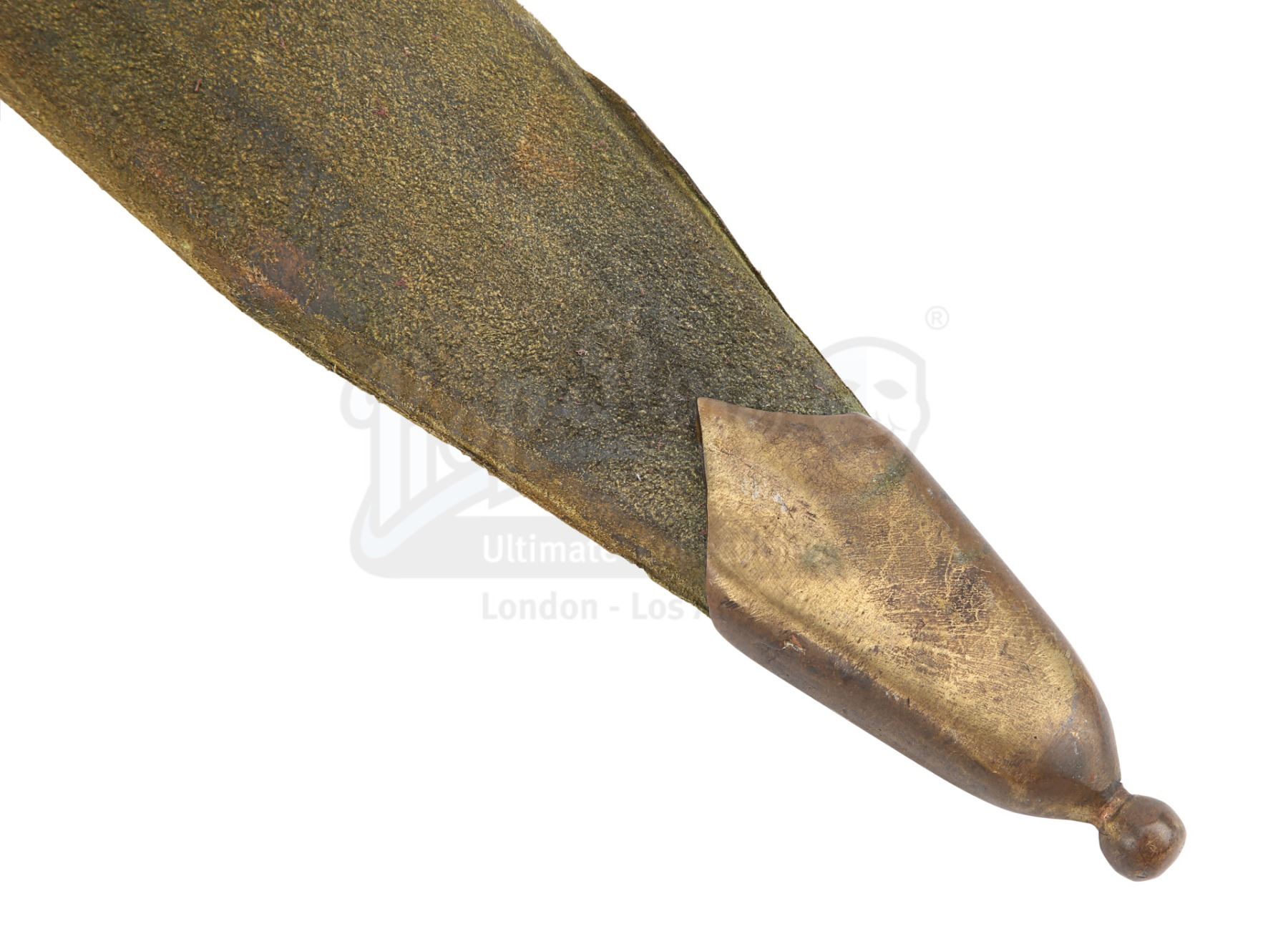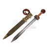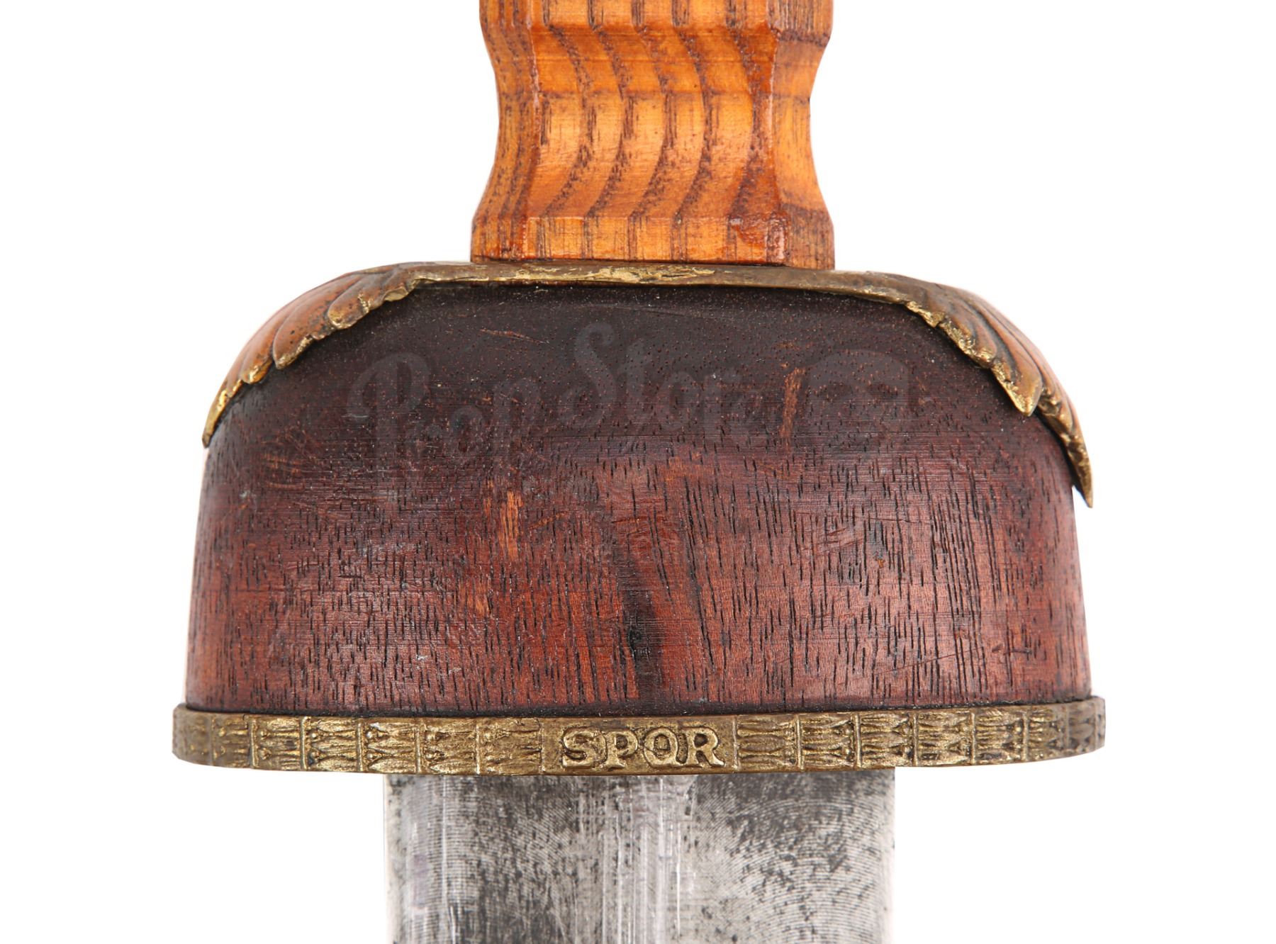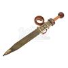 A hero officer’s sword and scabbard from Ridley Scott’s historical epic Gladiator. Officers wore their swords on their hips during the opening battle against the Barbarian tribes in the forests of Germania.