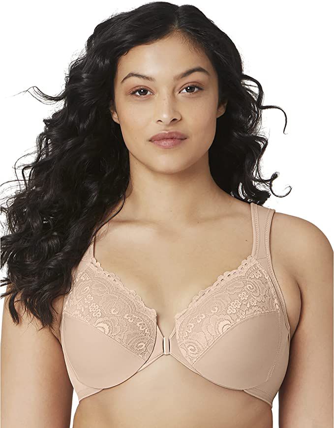 GLAMORISE WOMEN'S PLUS SIZE WONDERWIRE FRONT CLOSURE BRA (#1245), SIZE 42C, CAFE COLOR