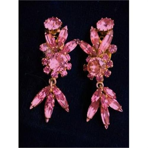 GLAMOROUS VINTAGE RHINESTONE DANGLING EARRINGS, MADE BY FAMOUS SHERMAN,IN GORGEOUS MEDIUM PINK COLOR, BOTH EARRINGS ARE SIGNED AND IN EXCELLENT, MINT, CONDITION.Each Measures about 2 1/4 inch long, US Buyer please remit 7.00 for shipping plus insurance.THANKS.