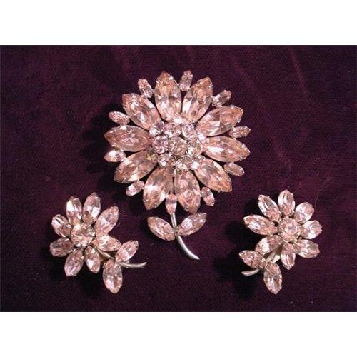 STUNNING VINTAGE RHINESTONE SET, MADE BY FAMOUS SHERMAN,IN GORGEOUS CANDY-PINK COLOR, THE SET CONSISTS OF BEAUTIFUL BROOCH AND MATCHING EARRINGS,AND EACH PIECE IS SIGNED AND IN EXCELLENT, MINT, CONDITION.,Brooch measures about 2 1/4 inch long and each earrings about 1 1/4 inch long, EACH PIECE DEPICTS CHARMING ROSE - AS PER IMAGES, US Buyer please remit 8.00 for shipping plus insurance.,THANKS.