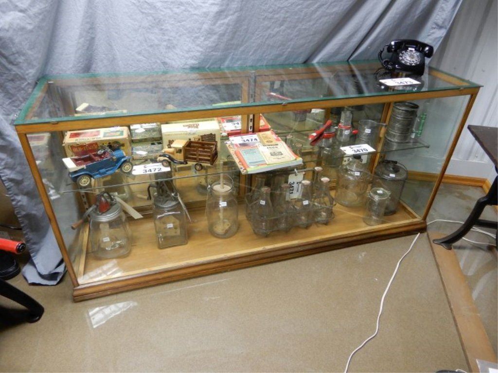 GLASS 2 SHELF CABINET - MIRRORED BACK 69 1/2" X 20" X 32" - CONTENTS NOT INCLUDED LOCATION: LOWER LEFT