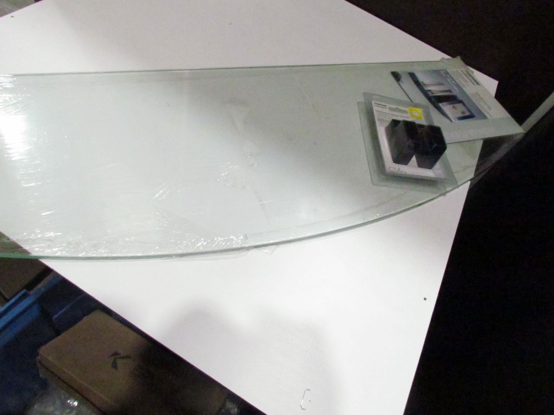 GLASS 8 MM TEMPERED SHELF, MADRID 36" WIDE, 8 TO 12" DEEP, WITH BRACKET