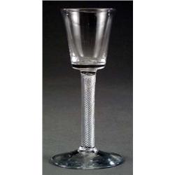 GLASS - An English cordial glass An English cordial glass, with bucket shaped bowl, multiple air twist column, spreading circular foot, 5.5in high, c.1760