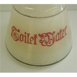 GLASS CLAMBROTH BARBER BOTTLE. Circa 1890. Marked "Toilet Water" on front. Good overall condition. 7.25" H