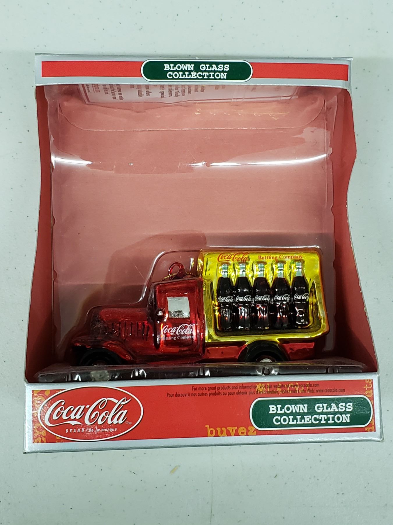 GLASS BLOWN COCA COLA TRUCK ORNAMENT