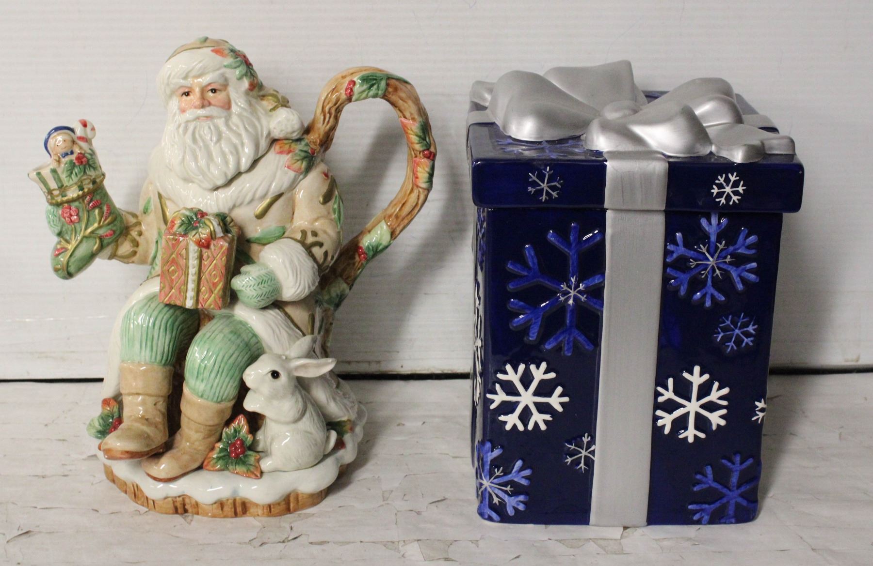 GLASS BLUE GIFTBOX & SANTA TEAPOT