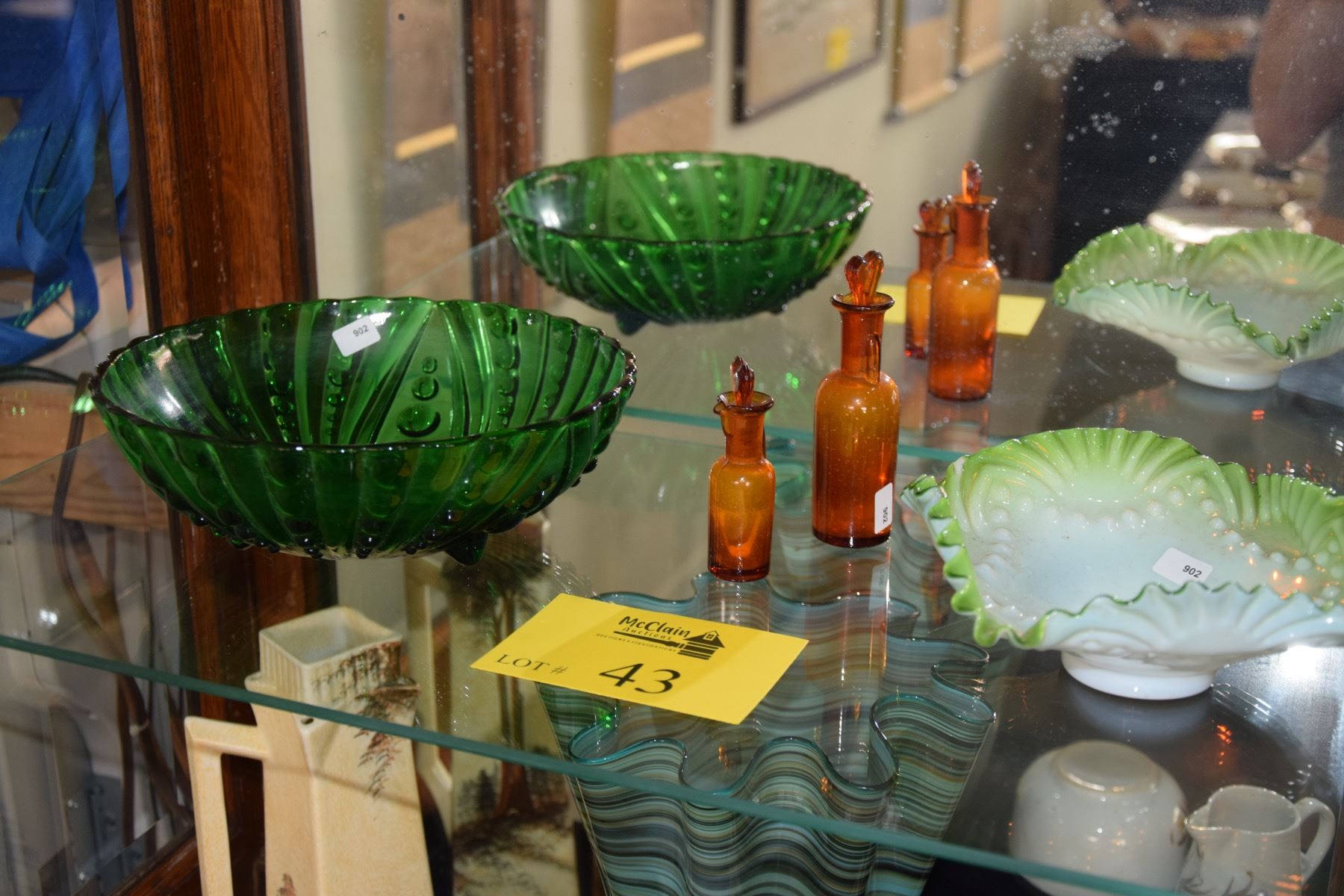 GLASS BOWLS & AMBER BOTTLES (4 PCS)