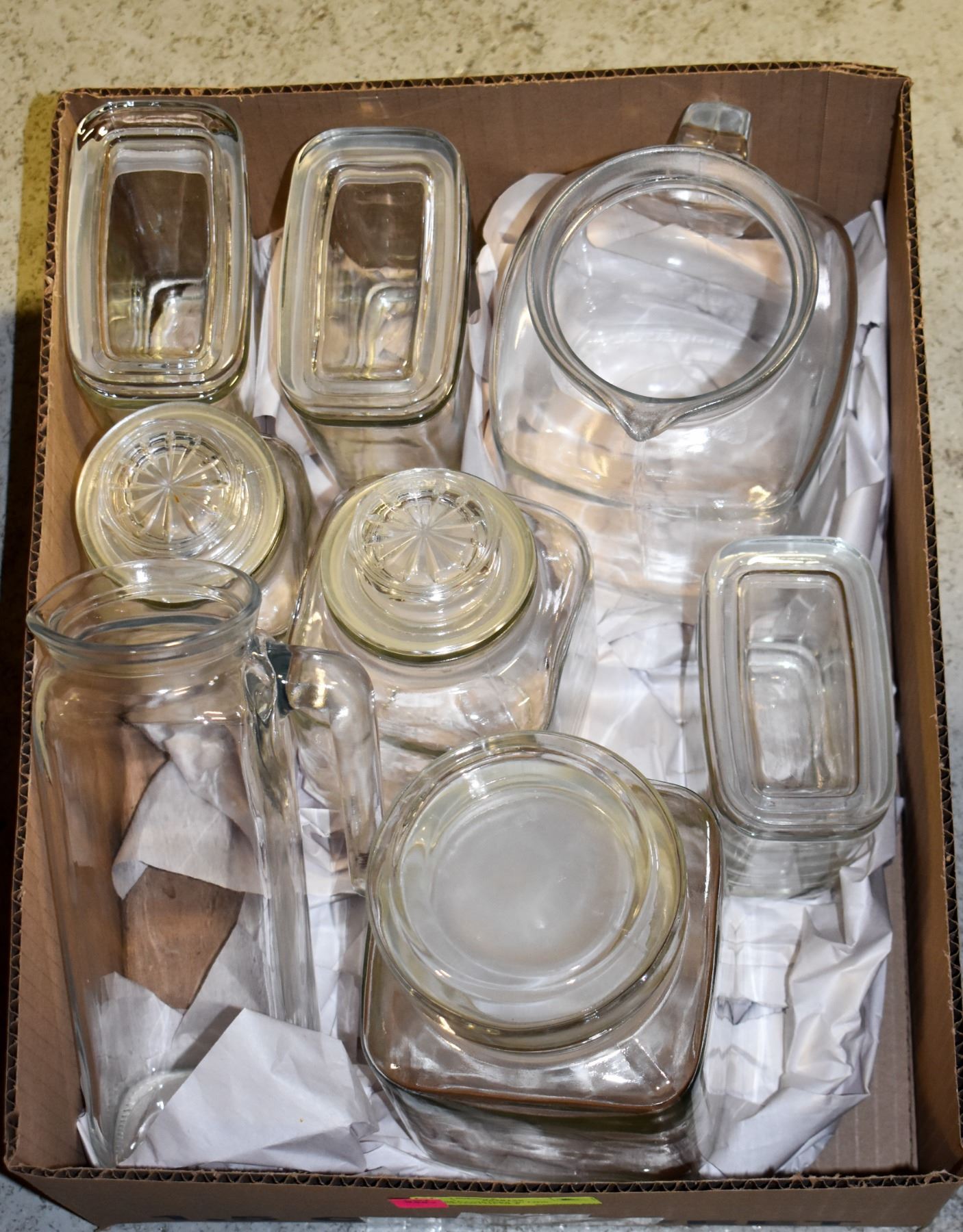 GLASS CANISTERS W/ LIDS- ASSORTED LOT OF 8
