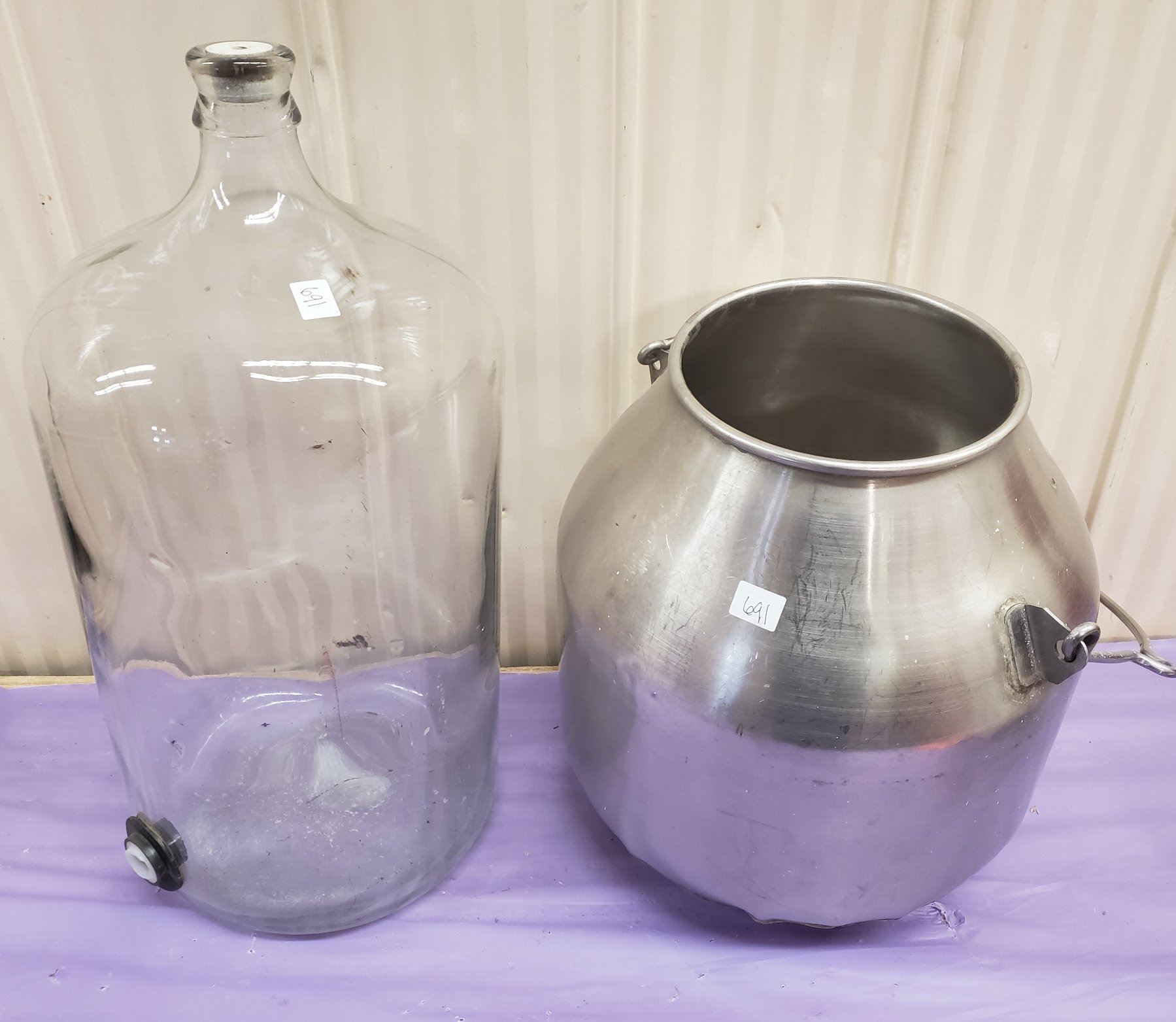 GLASS CARBOID WITH STAINLESS STEEL MILK PAIL