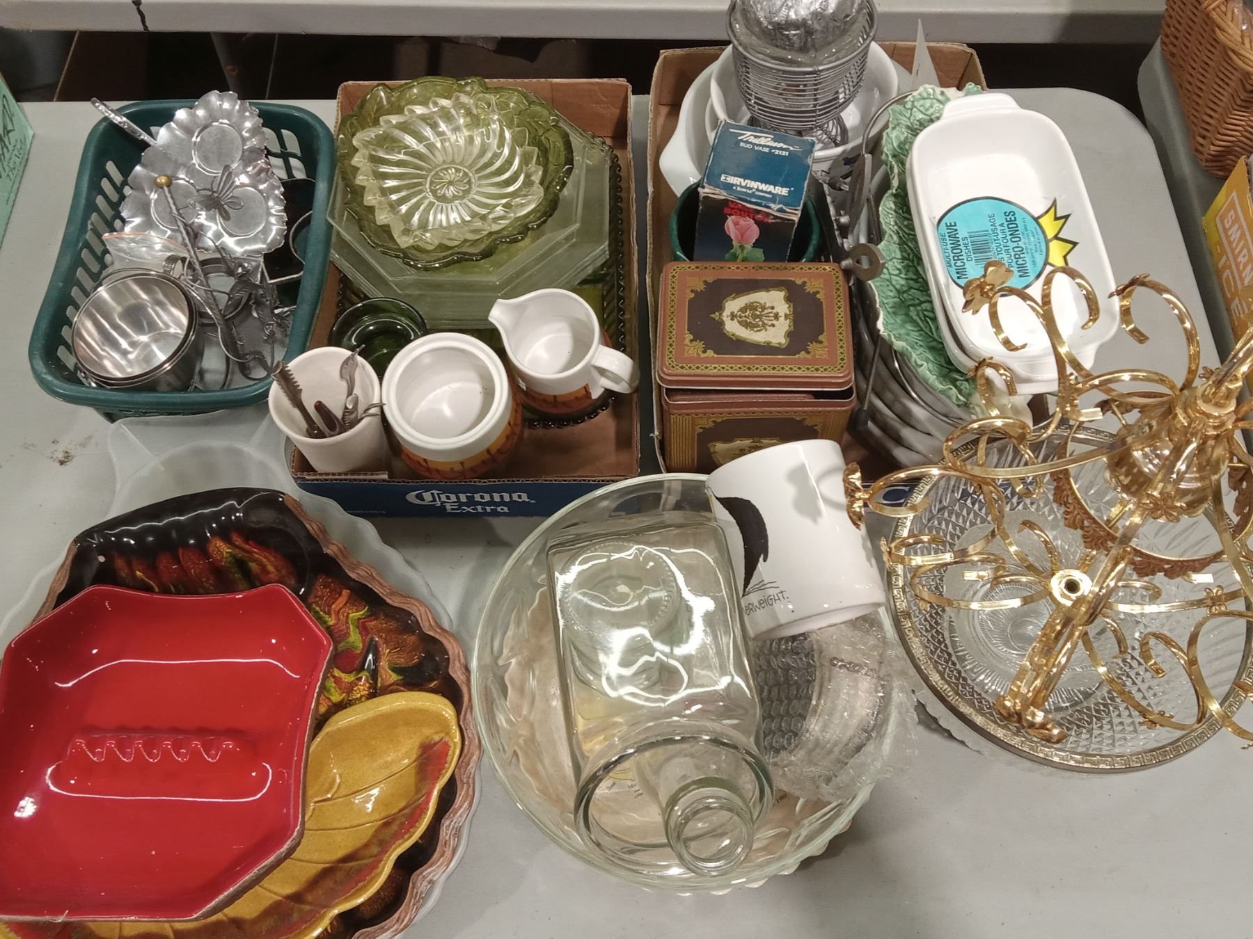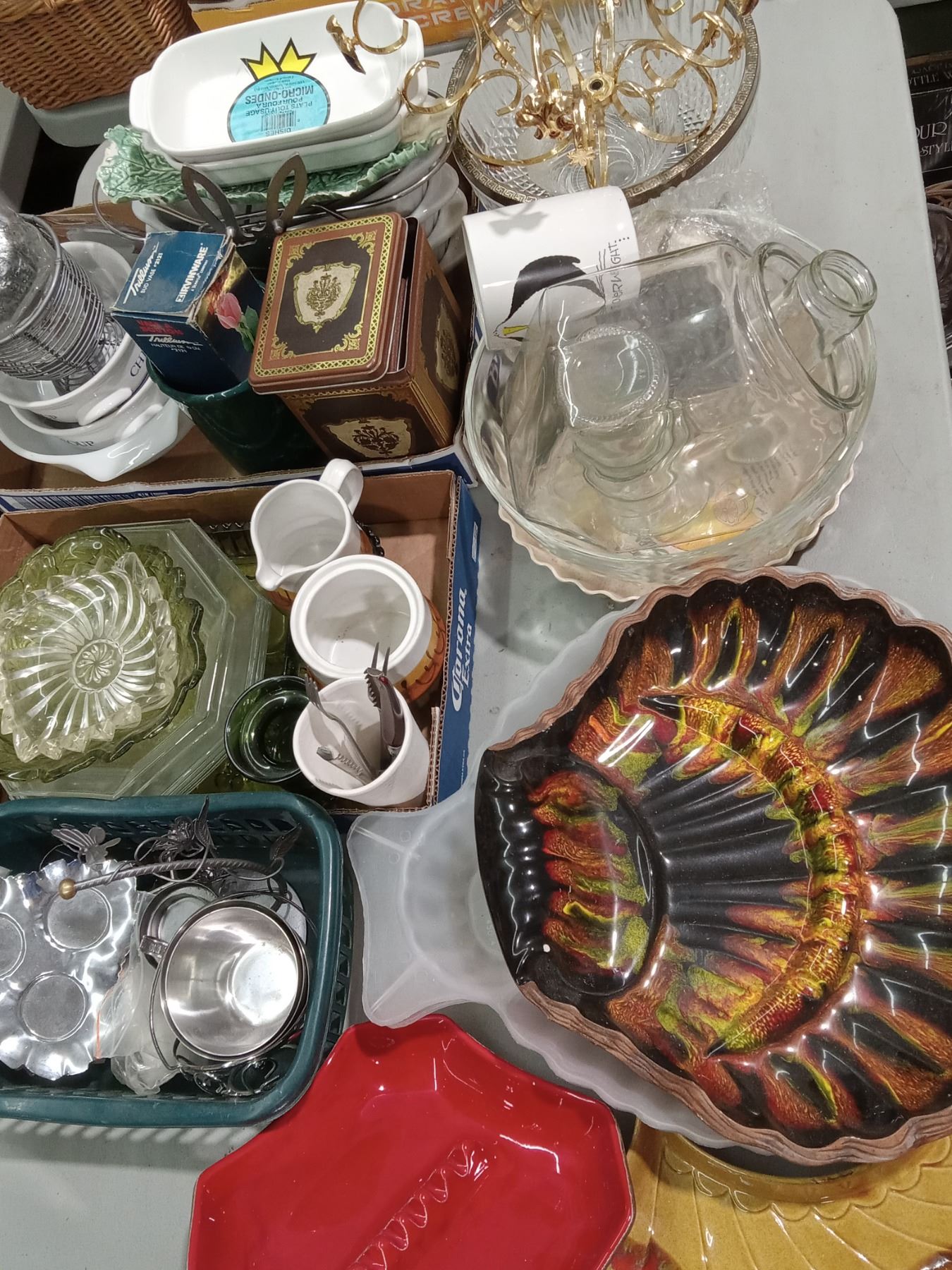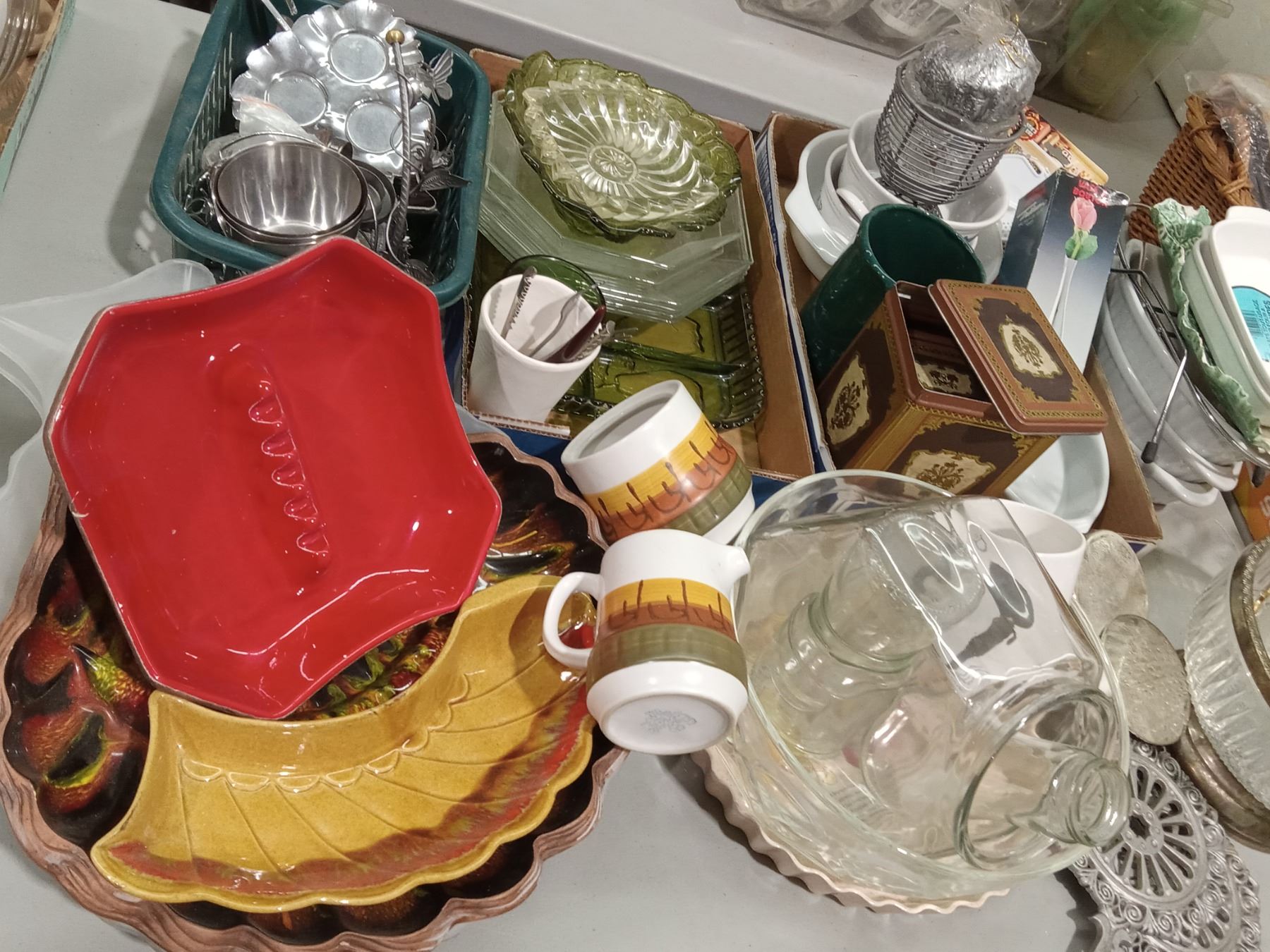 GLASS, CEAMIC, GREEN GLASS, WHITE SOUFFLE, METAL, ETC.(INCLS: GRAVY & TEA CERAMICS; COOKBOOKS)