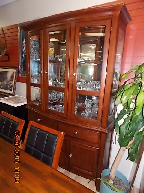 GLASS CHINA CABINET - 2PC bow front - touch light on hinge