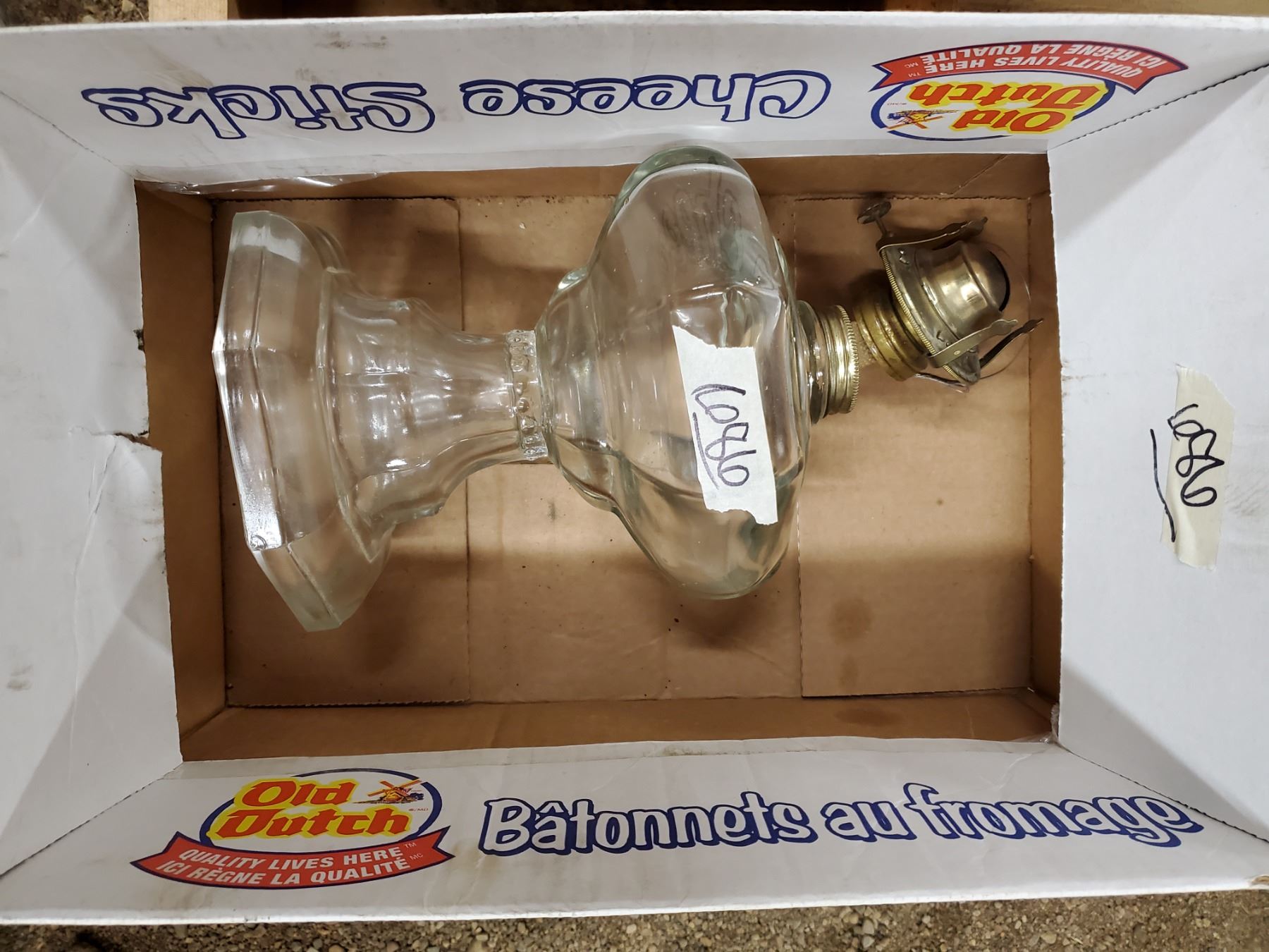 GLASS COAL OIL LAMP BASE 8" TALL, 6.5" WIDE TOP