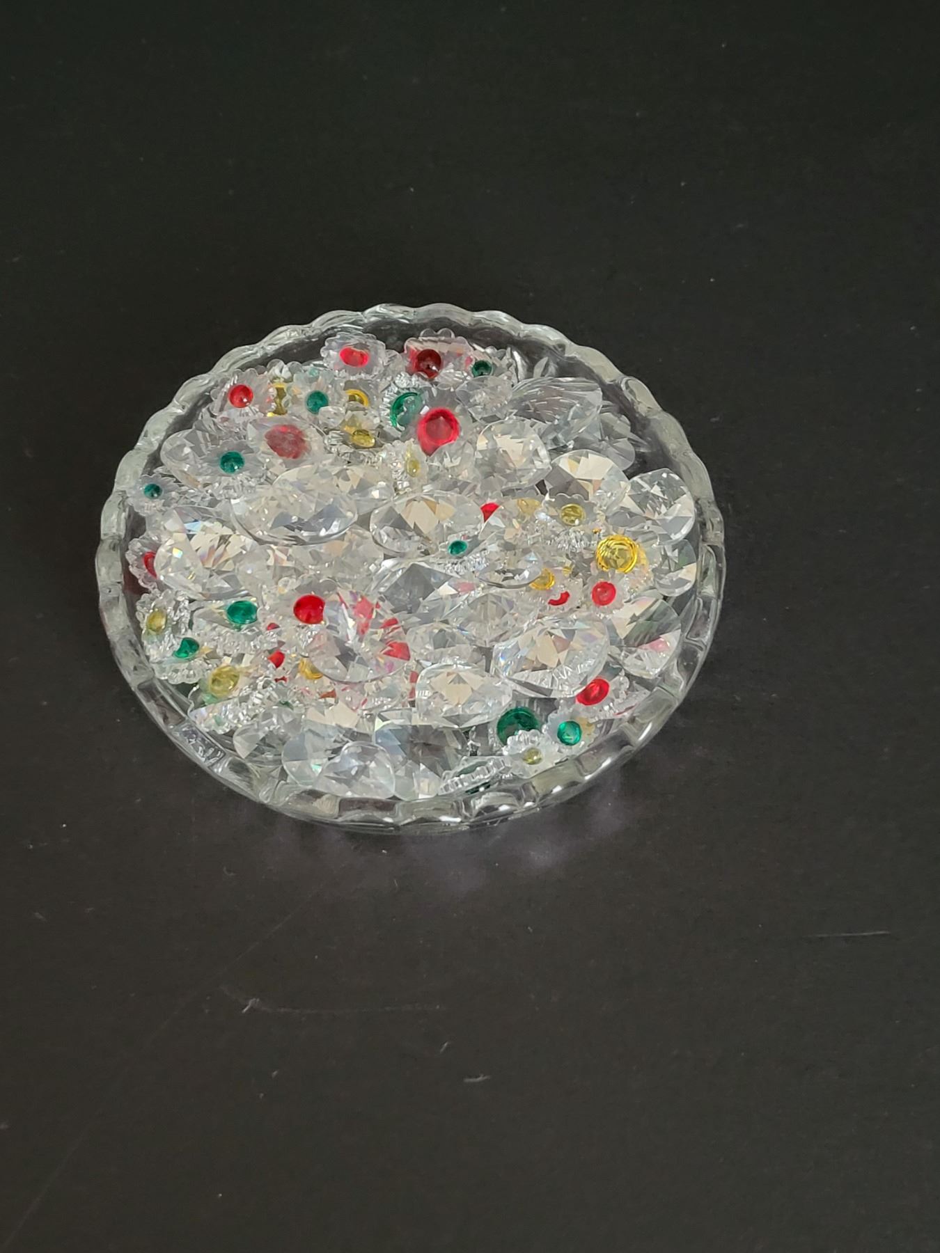 GLASS COASTER FILLED WITH MINIATURE FLOWER AND HEART CRYSTALS