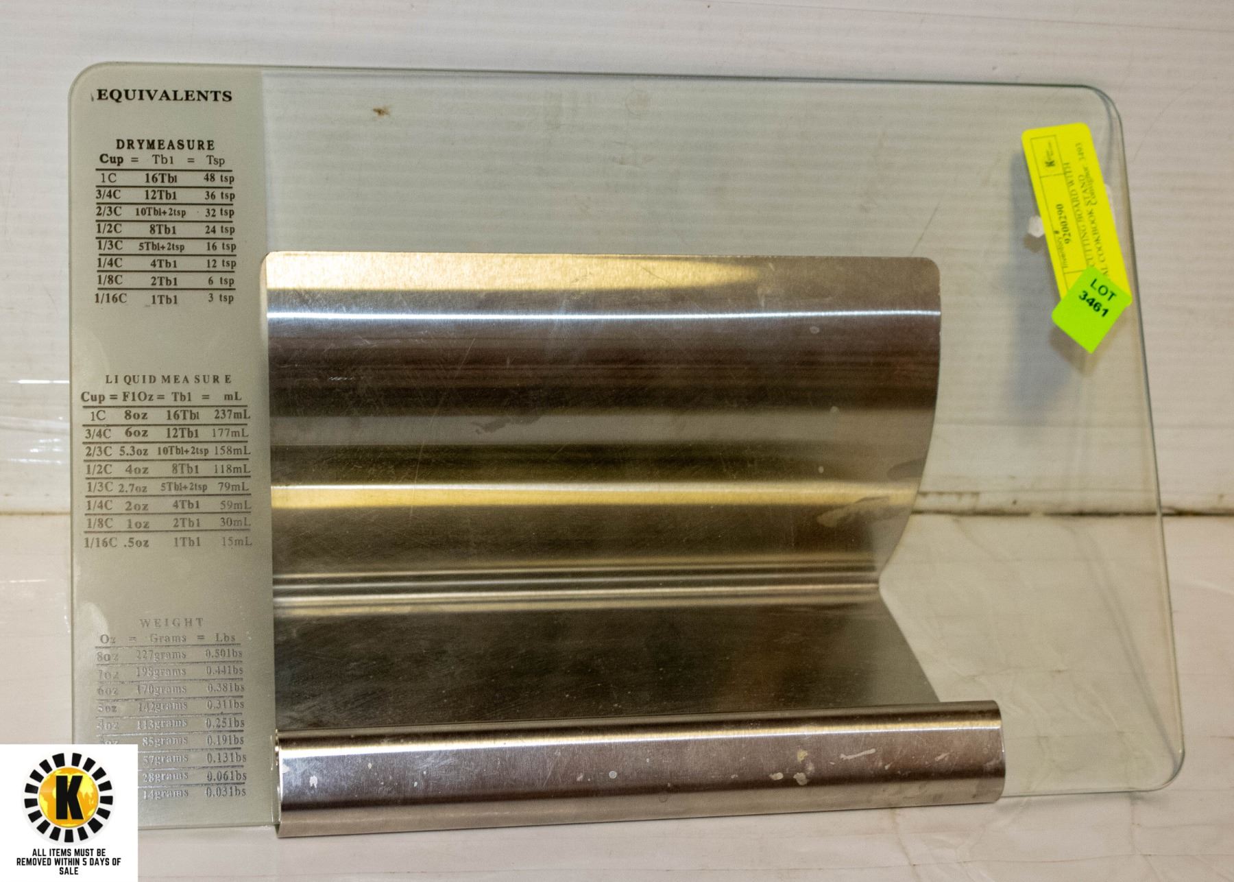 GLASS CUTTING BOARD WITH METAL COOKBOOK STAND