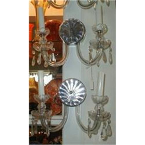 arms with bobeches hung with crystals. Plastic (replaced) "candle" sleeves.