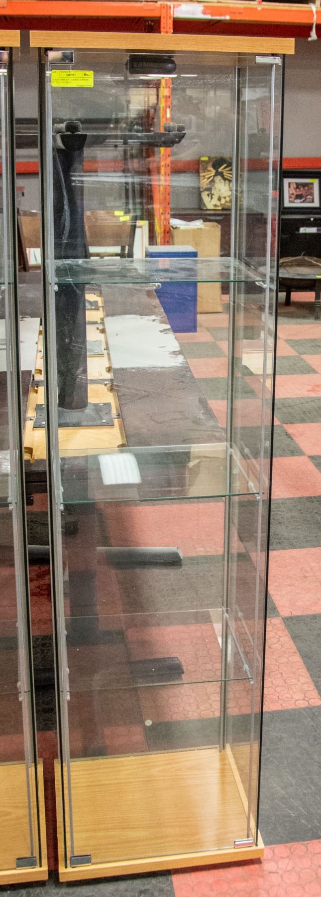 GLASS DISPLAY CABINET APPROX 63  TALL 14  WIDE