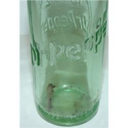 GLASS DR. PEPPER BOTTLE with embossed Dr. Pepper logo. 8" H