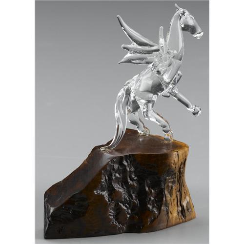 GLASS FIGURE OF A REARING WINGED HORSE