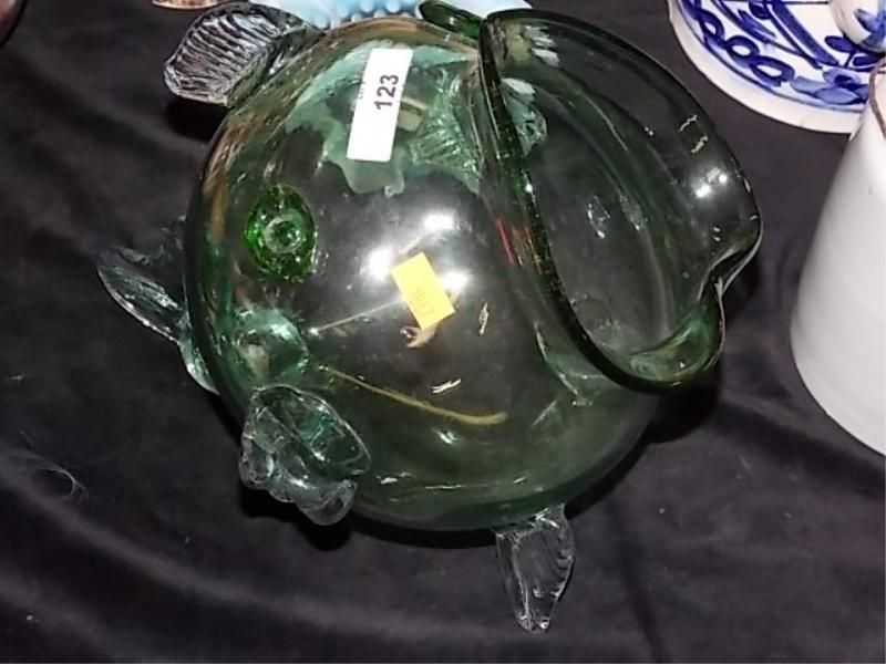 GLASS FISH BOWL - GREEN - SHAPED LIKE FISH