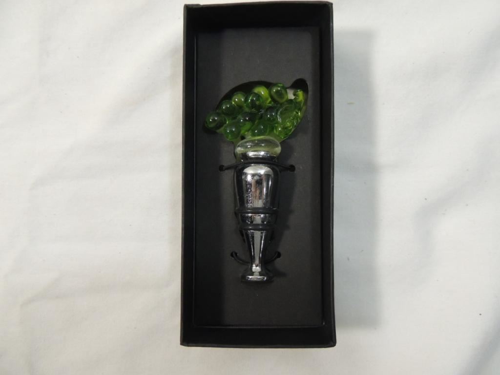 GLASS AND METAL DECORATIVE BOTTLE STOPPER,WINE BOTTLE STOPPER, DESIGNER STOPPER, BOTTLE TOPPER AS SHOWN SEE PHOTO FOR MORE DETAILS.