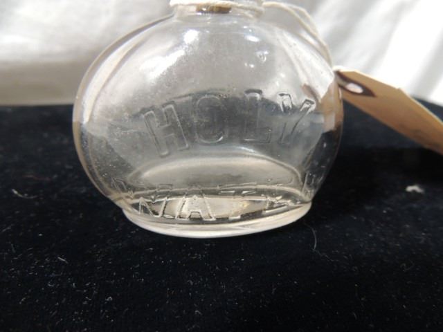 1920'S ERA HOLY WATER BOTTLE, MARKED AS SHOWN.