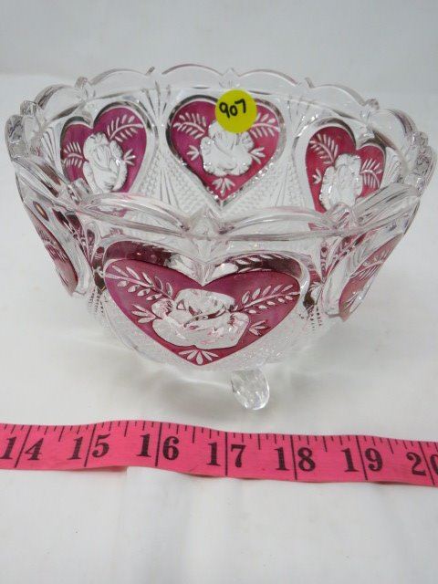GLASS INDIANA CANDY BOWL (INTRICATE ROSE DESIGN)