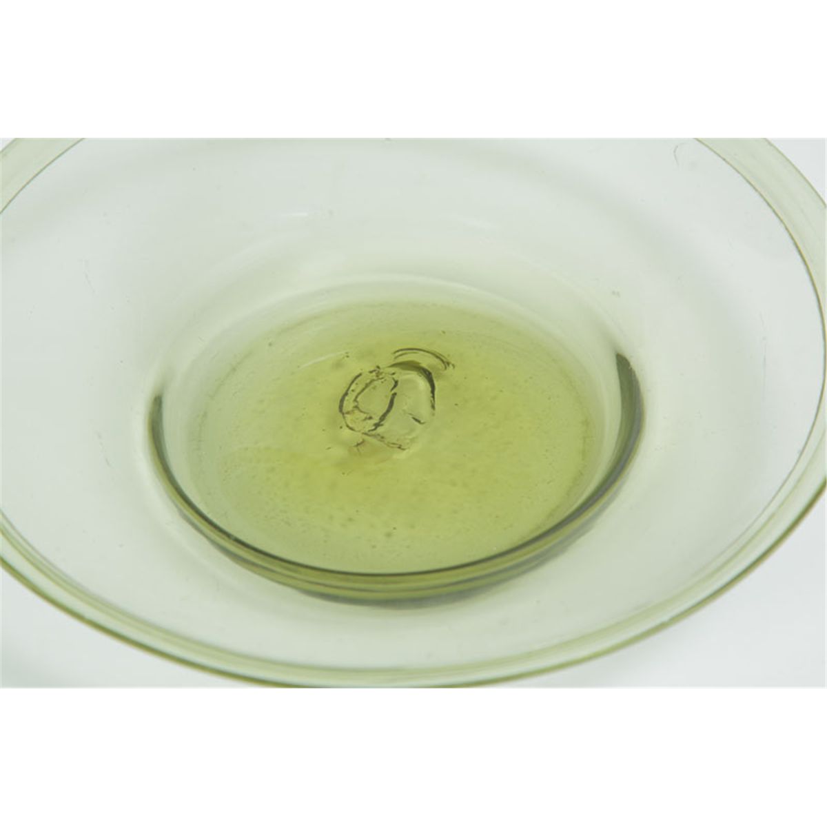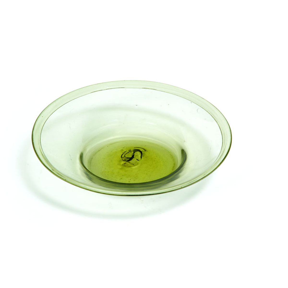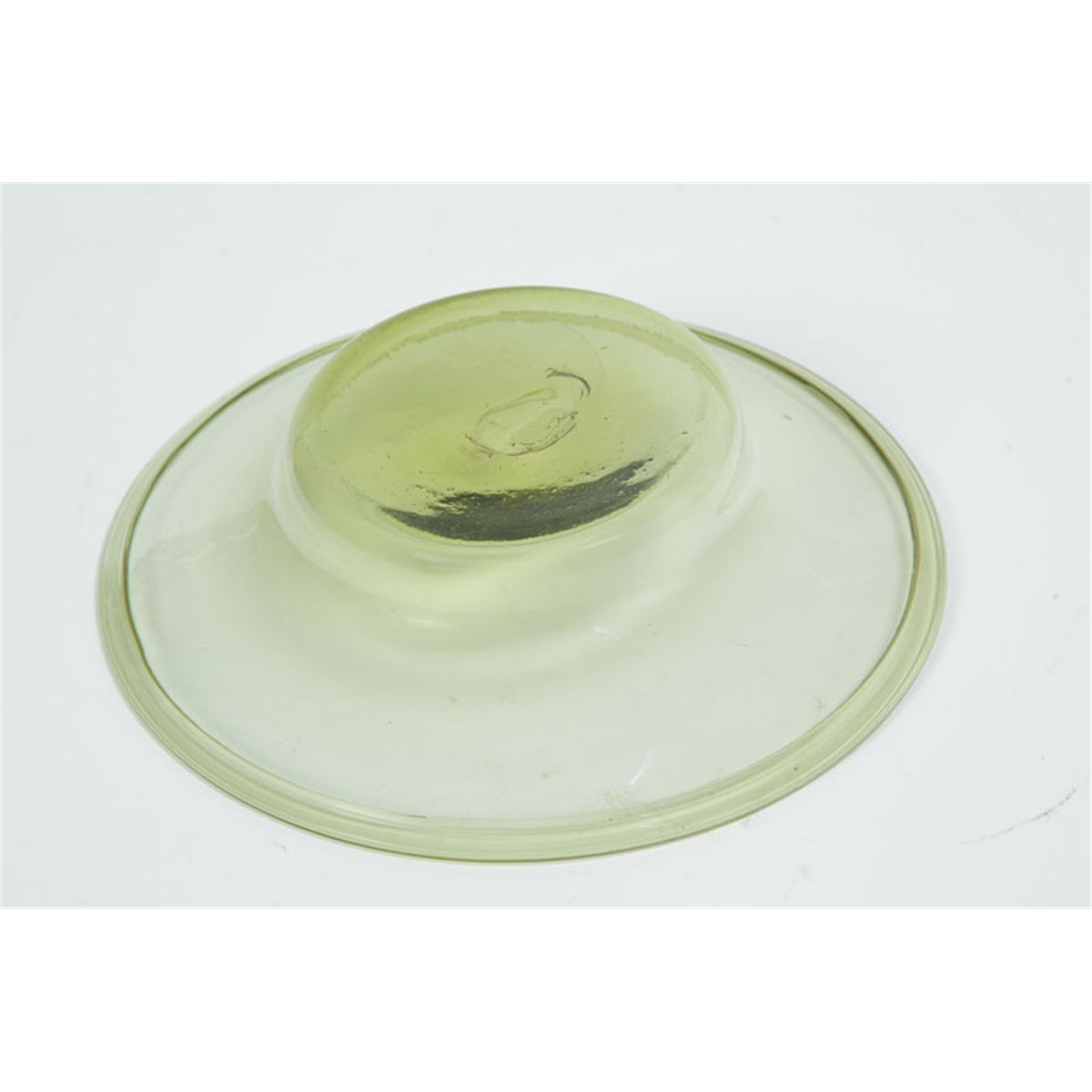 Zanesville, Ohio, 1820-1840. Low, wide bowl in citron yellow with folded rim. Burst bubble. 10 1/4"d. Ex David Good (Ohio).