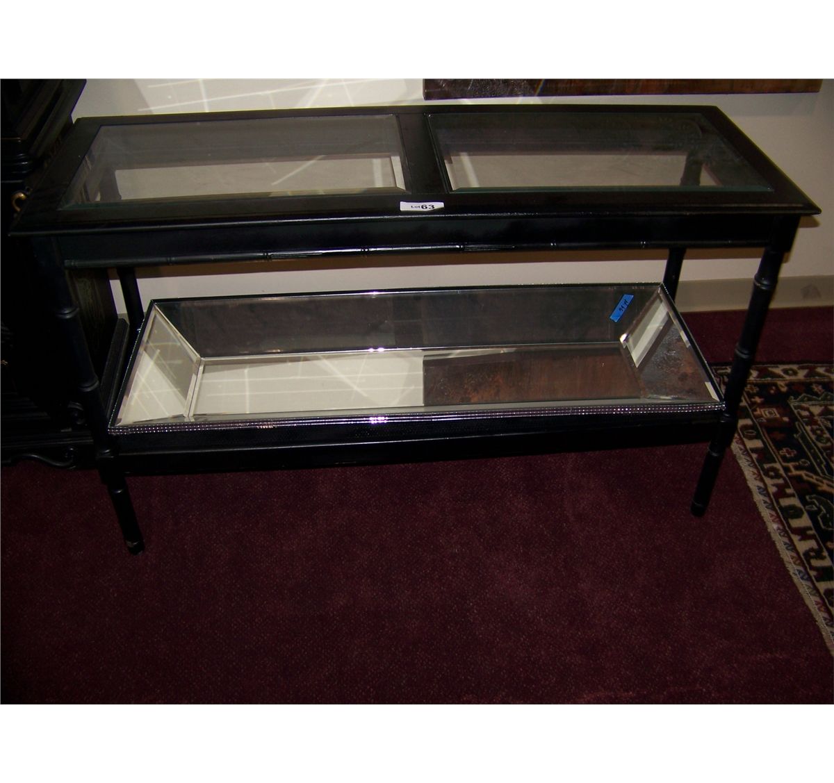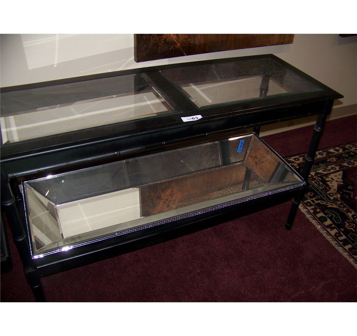 GLASS & MIRRORED BLACK WOOD SIDE TABLE