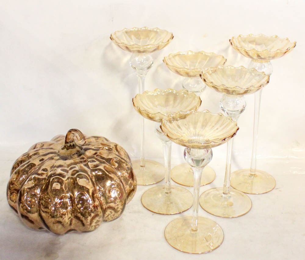 GLASS PUMPKIN W/ DECORATIVE GLASS CANDLE HOLDERS